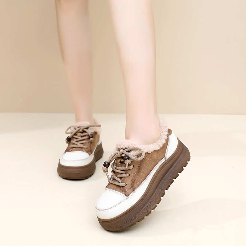 户外皮毛一体加绒加厚保暖棉鞋 环球厚底真皮雪地靴女2025新款 冬季