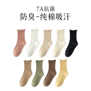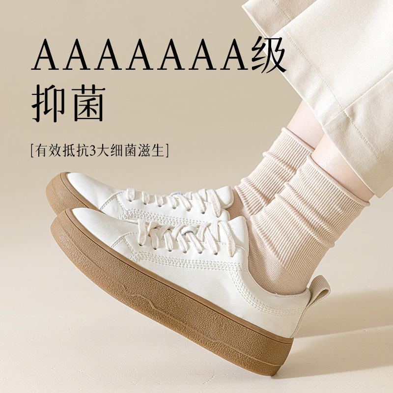 月子无骨高筒抗菌防臭长筒袜 中筒袜白色春秋季 袜子女款 纯棉秋冬季