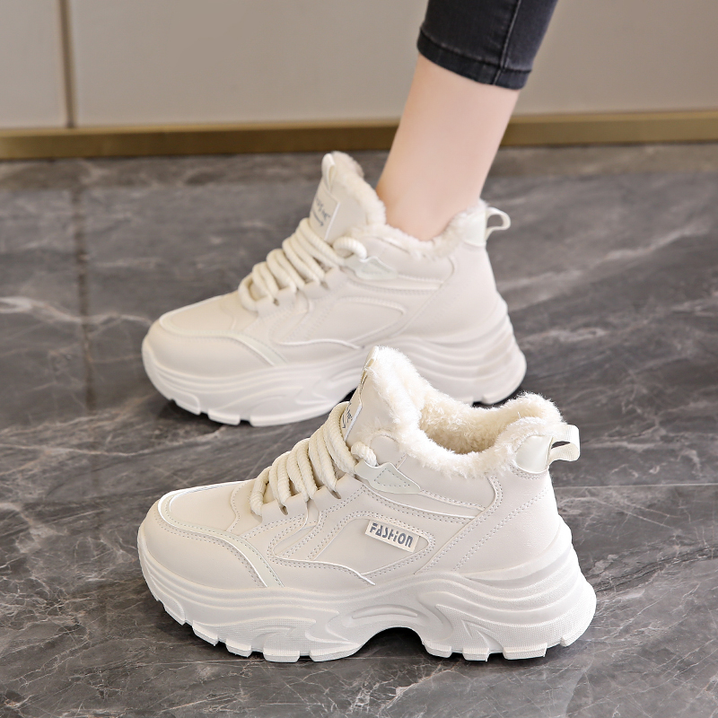 保暖加绒面包鞋 防水短筒增高棉鞋 新款 松糕厚底雪地靴女2025年冬季