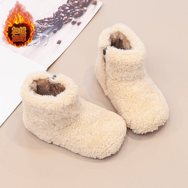 柔软保暖里外短毛绒儿童一脚蹬宽松短靴女童冬季 休闲防滑棉靴子冬