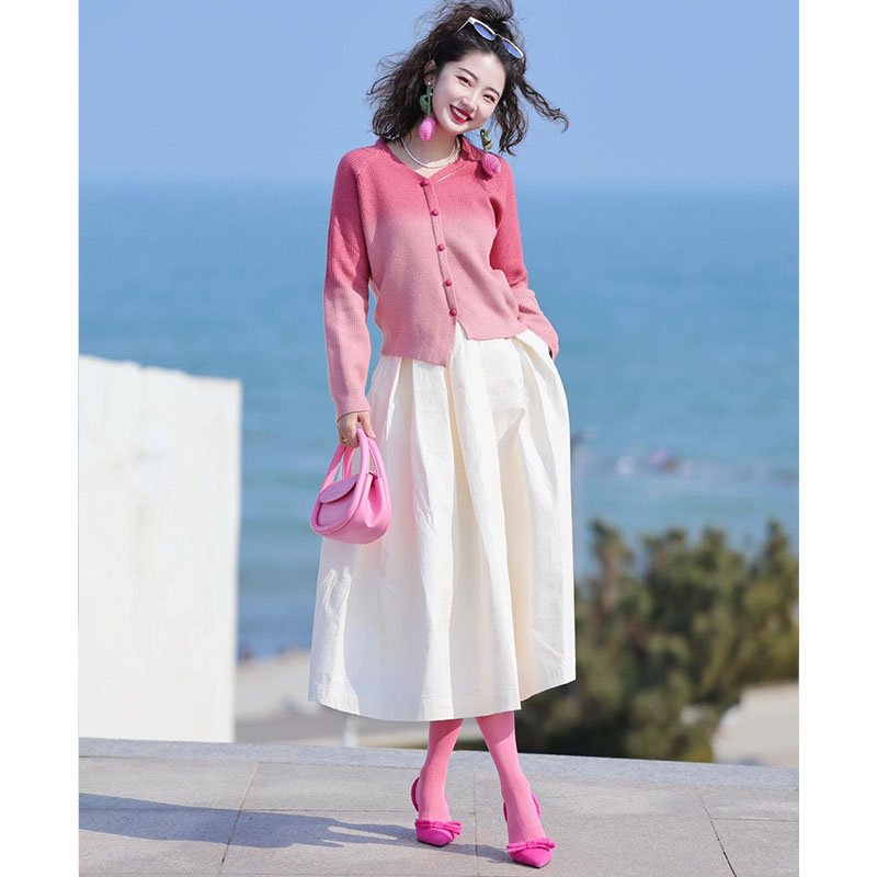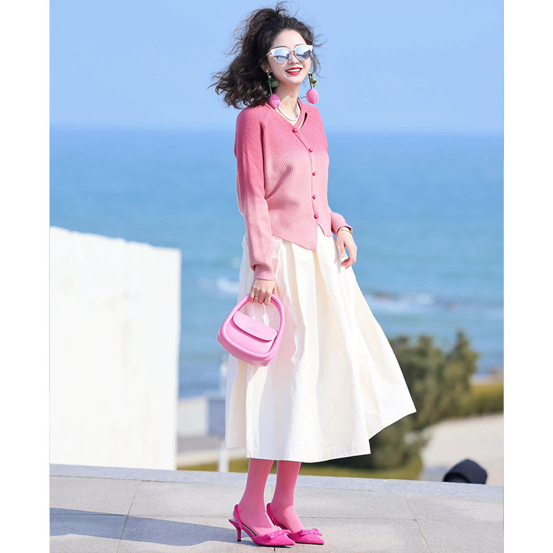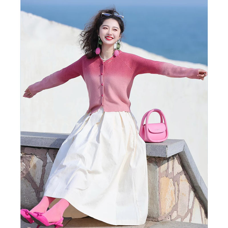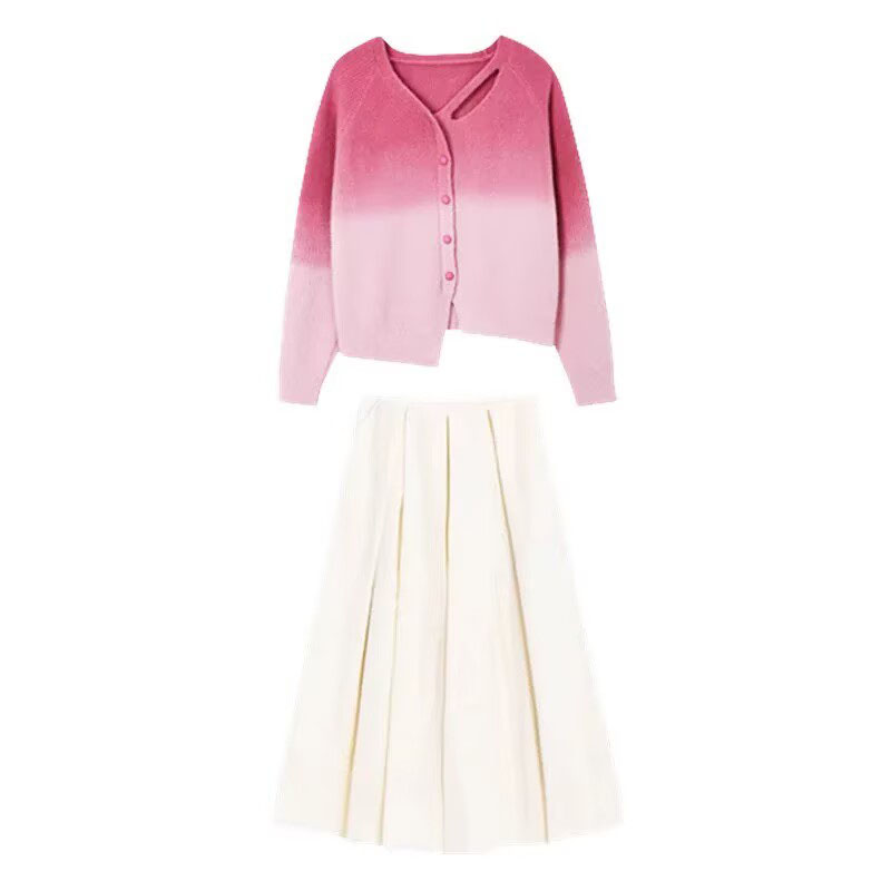 两件套装 半身裙时尚 女 气质御姐渐变粉色针织毛衣开衫 秋冬2025新款