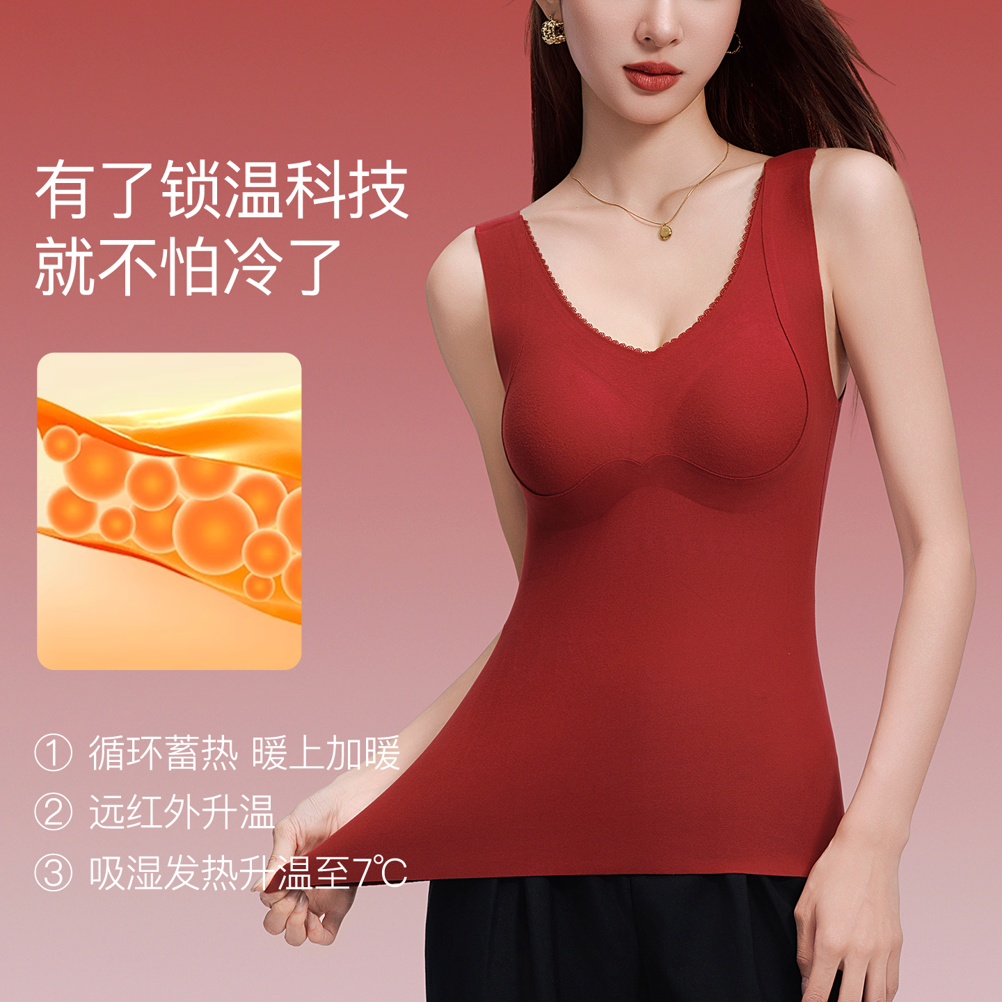 红色保暖背心女带胸垫一体加绒加厚秋冬季 打底内搭吊带本命年上衣