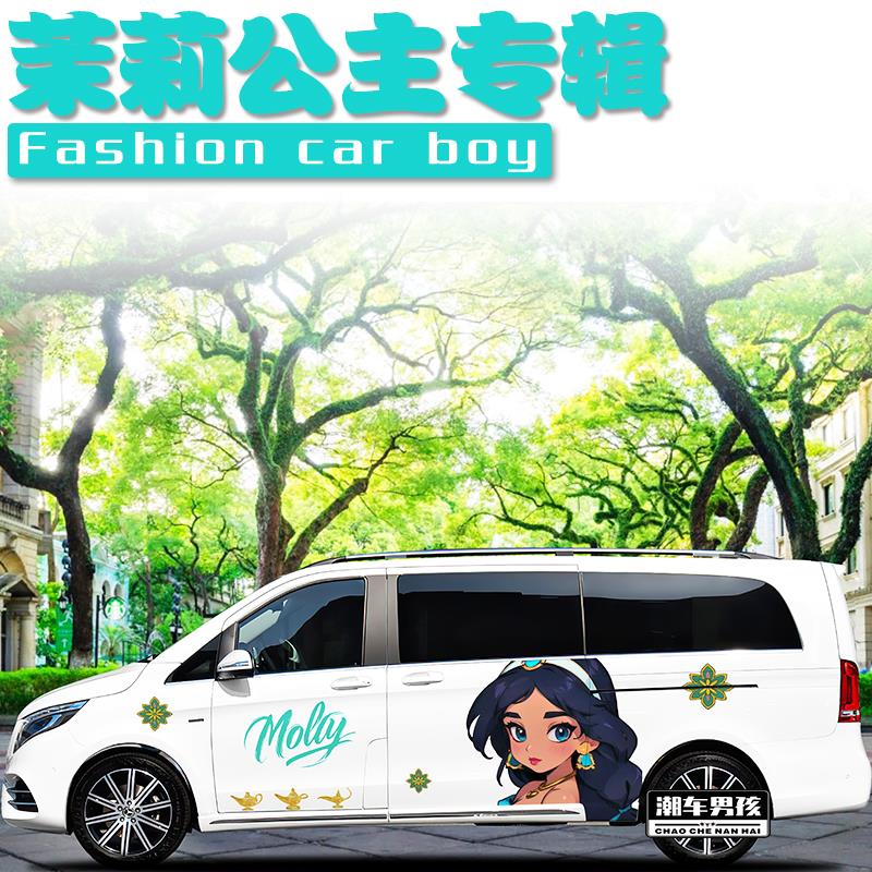 公主请上车奔驰V260L车贴威霆 创意定制 茉莉公主车身两侧贴纸个性
