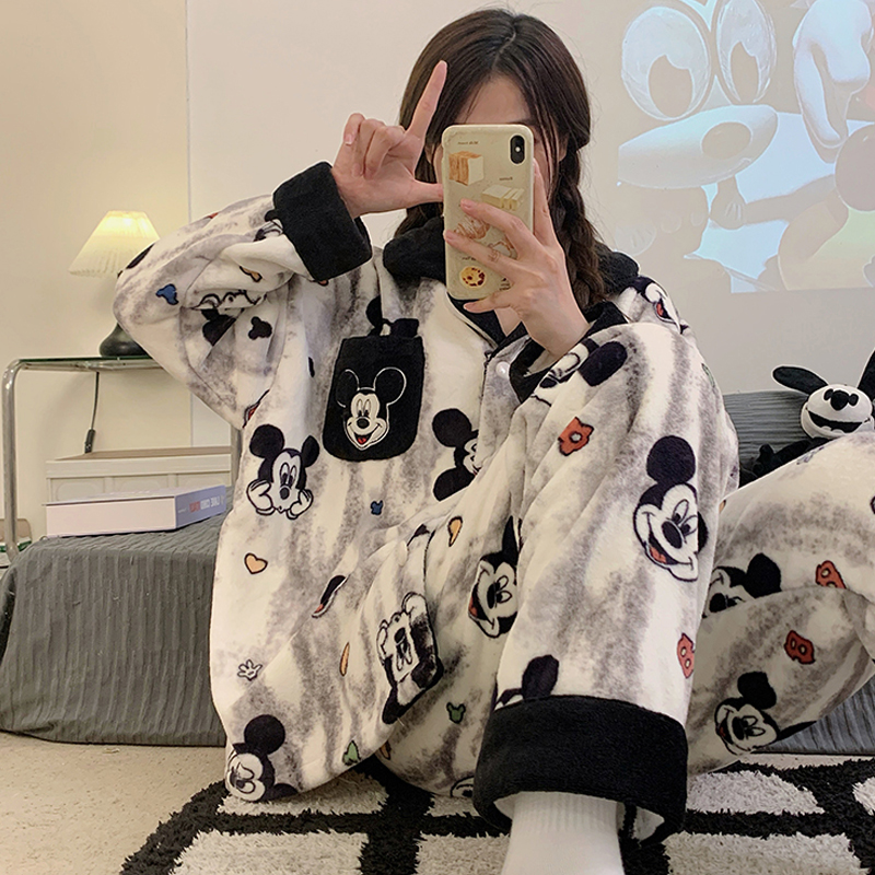加绒加厚可爱家居服套装 秋冬季 2025新款 猫人法兰绒情侣睡衣男女款