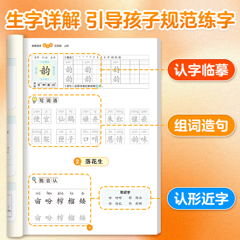 跟着课本练汉字1年级上册 同步教材点阵描绘语文知识拓展趣味互动成语笔顺视频教程练字书字帖规范书写