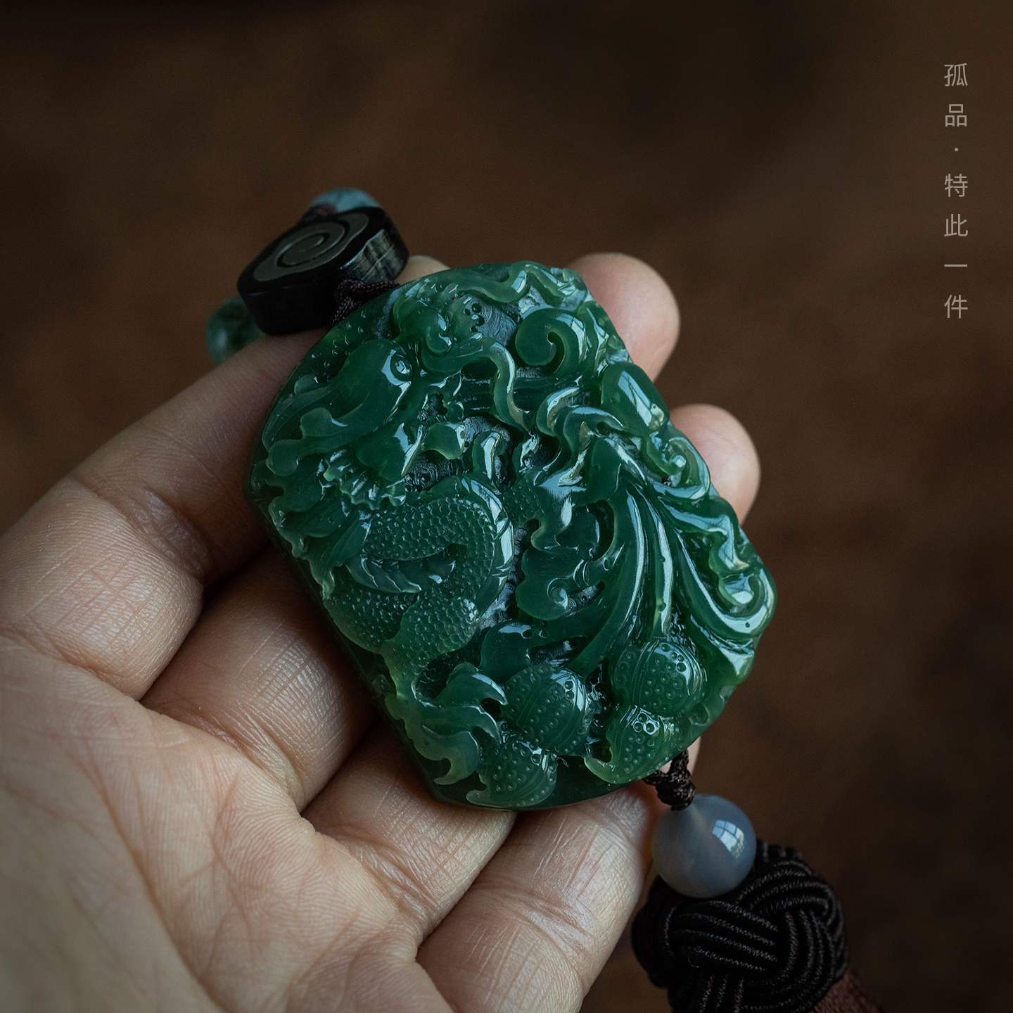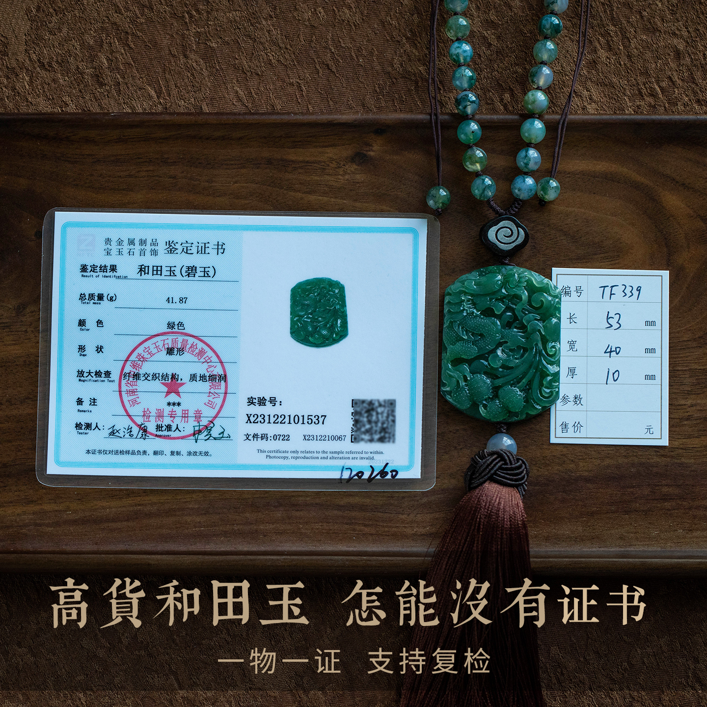 天然和田玉石汽车挂件双面雕刻车载流苏挂饰珠链一物一证 孤品