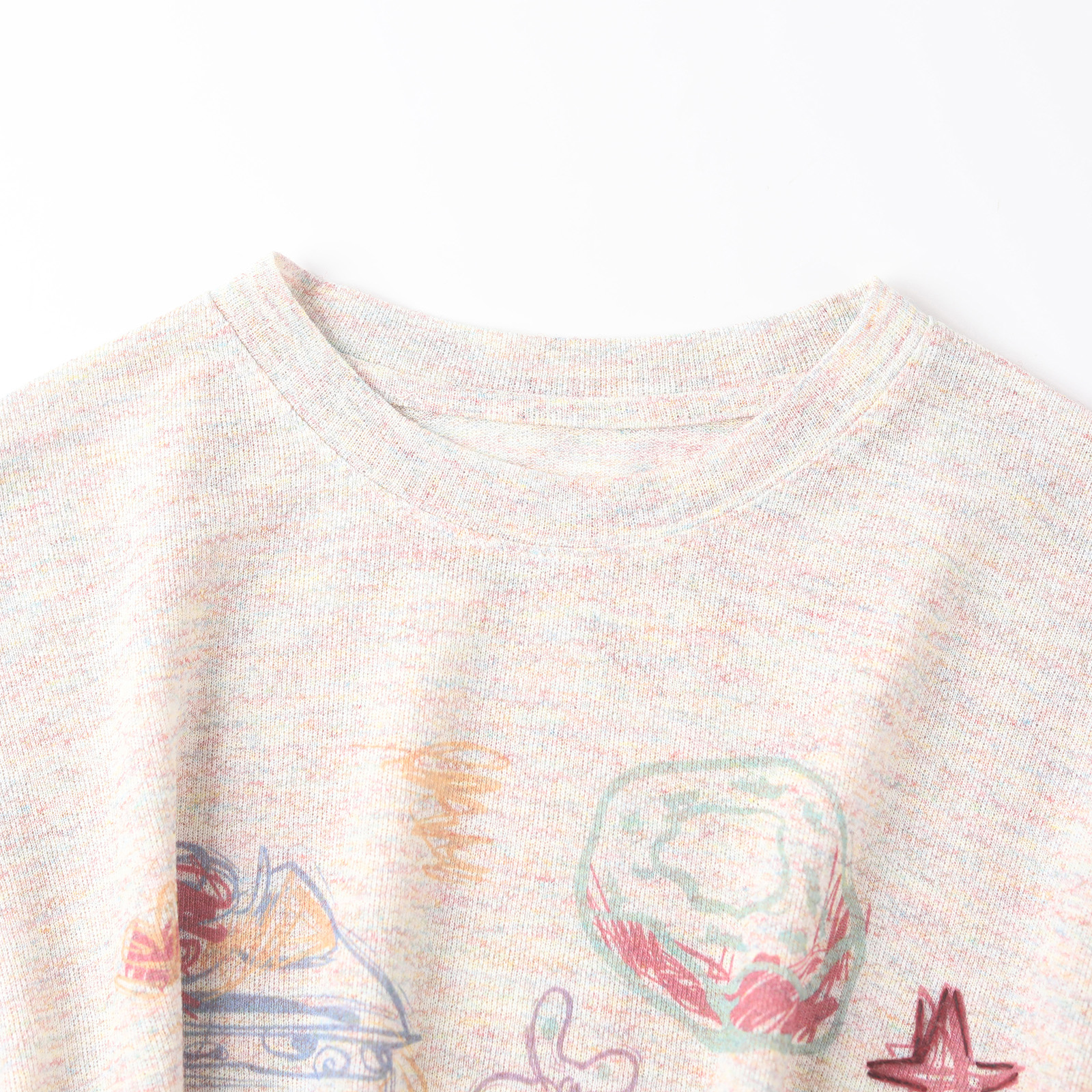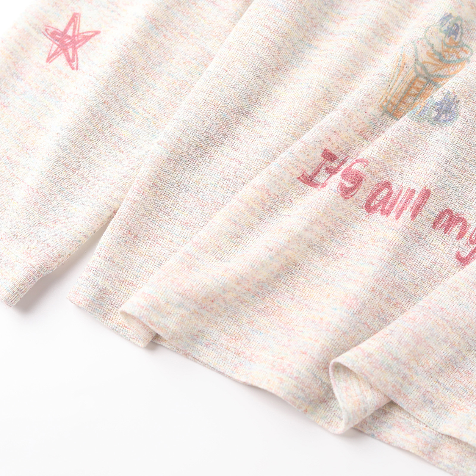 新品 T恤2025秋季 杏粉色休闲韩系上衣女 try手绘可爱图案长袖 wana