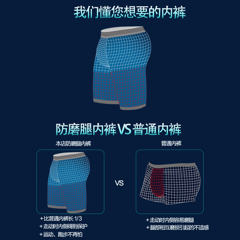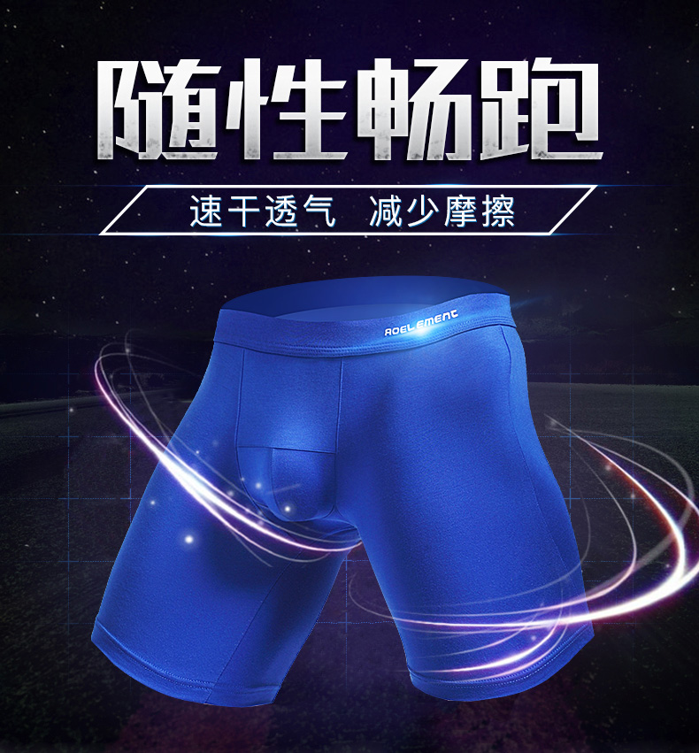 防磨腿运动加长腿内裤 速干四角裤 五分裤 跑步长款 莫代尔平角裤 男士