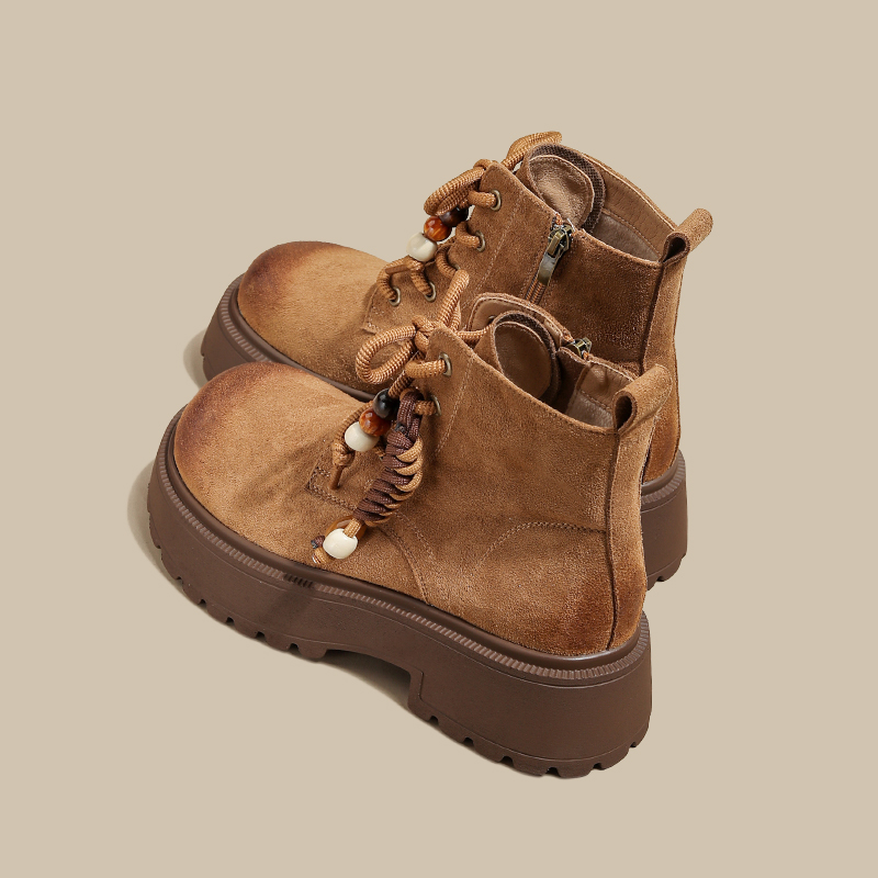 短靴子女 靴大黄靴女登山鞋 骆驼马丁靴女鞋 厚底增高英伦风工装