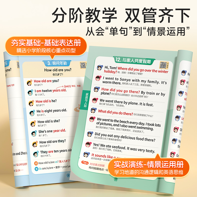 小学英语情景对话日常交流跟读零基础儿童英文大全小学书籍少儿零基础自学教材小学生口语日常对话 一问一答学口语 时光学