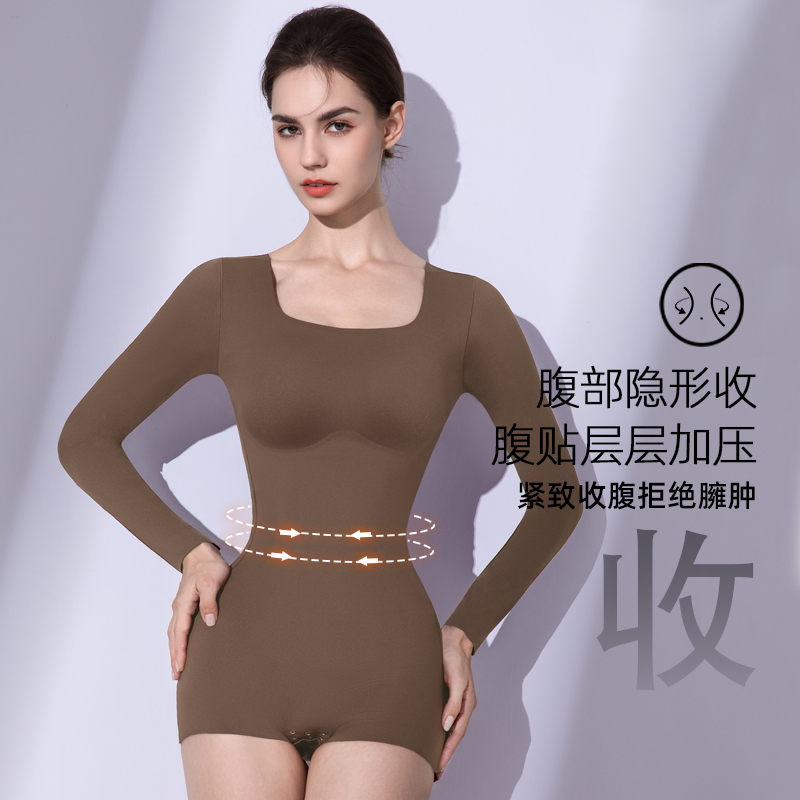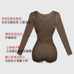猫人连体塑身衣女免穿文胸束腰收腹提臀收肚子长袖 美体塑形瘦身衣