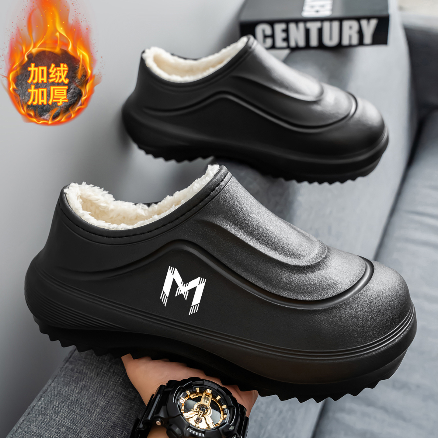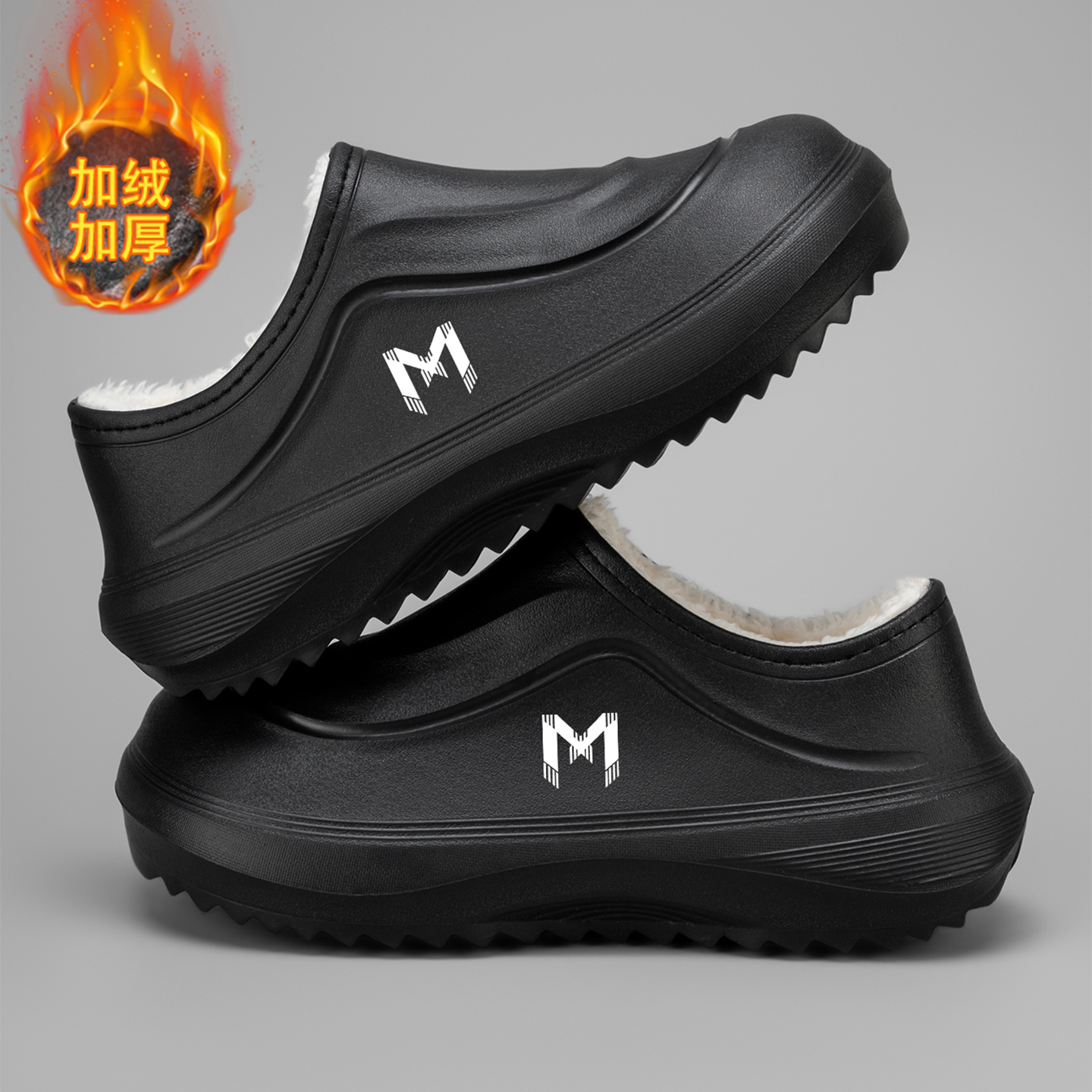 厚底防水拖鞋 加绒保暖加厚室内防滑居家外穿包跟棉鞋 棉拖男款 冬季