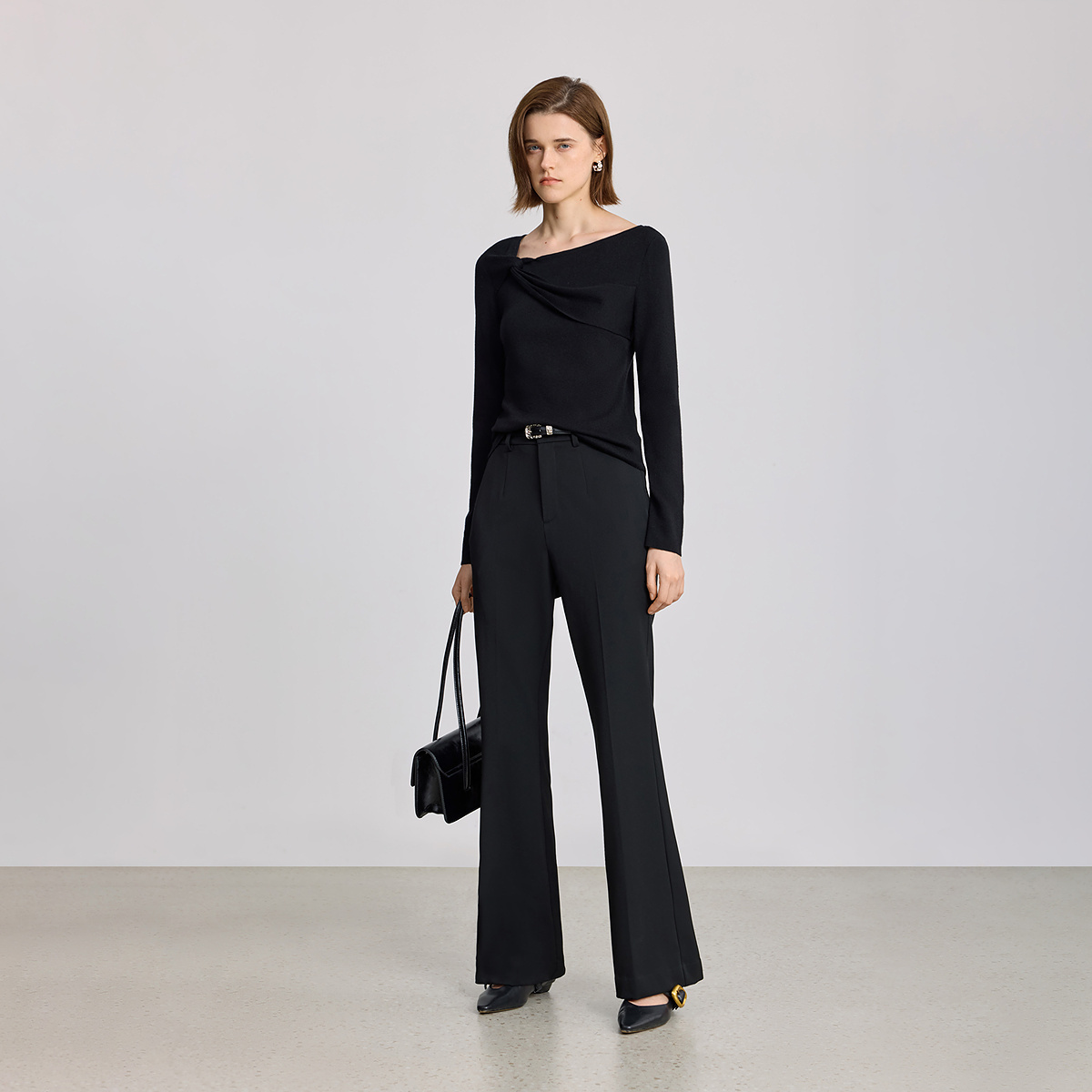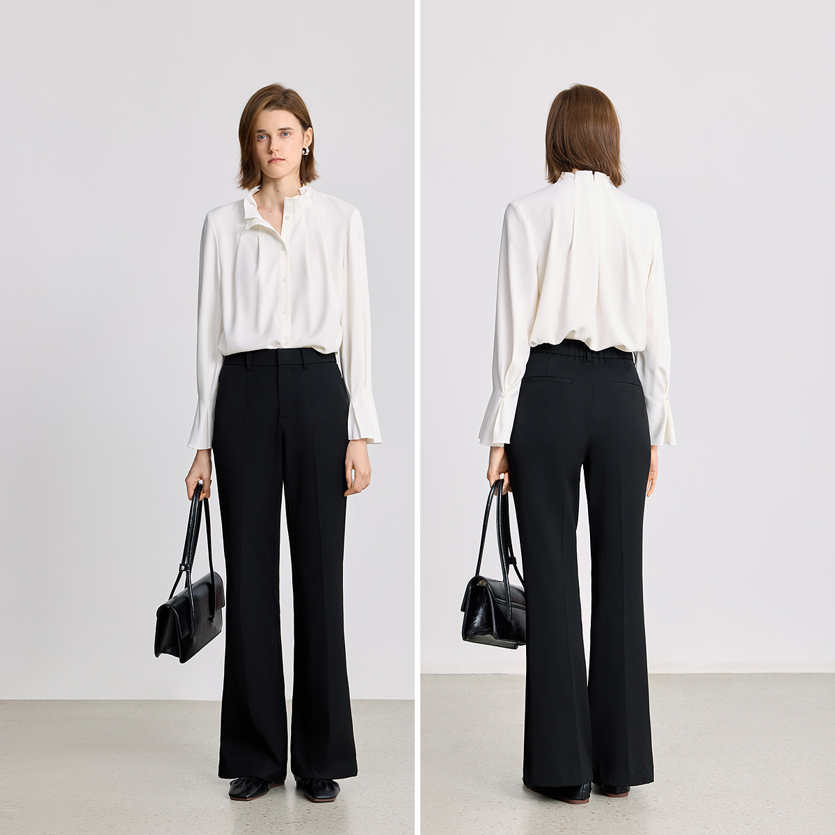天猫预售 弹力加绒通勤黑色微喇裤 LILY25冬新款 窄版 西裤 女装