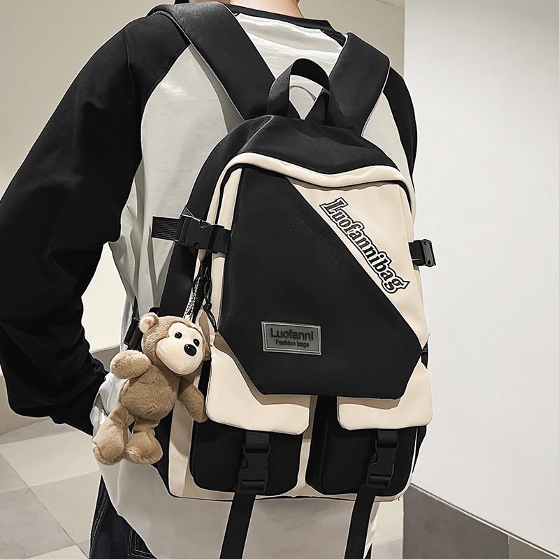 双肩包背包书包男士 简约百搭大容量高中旅行女初中生电脑大学生男
