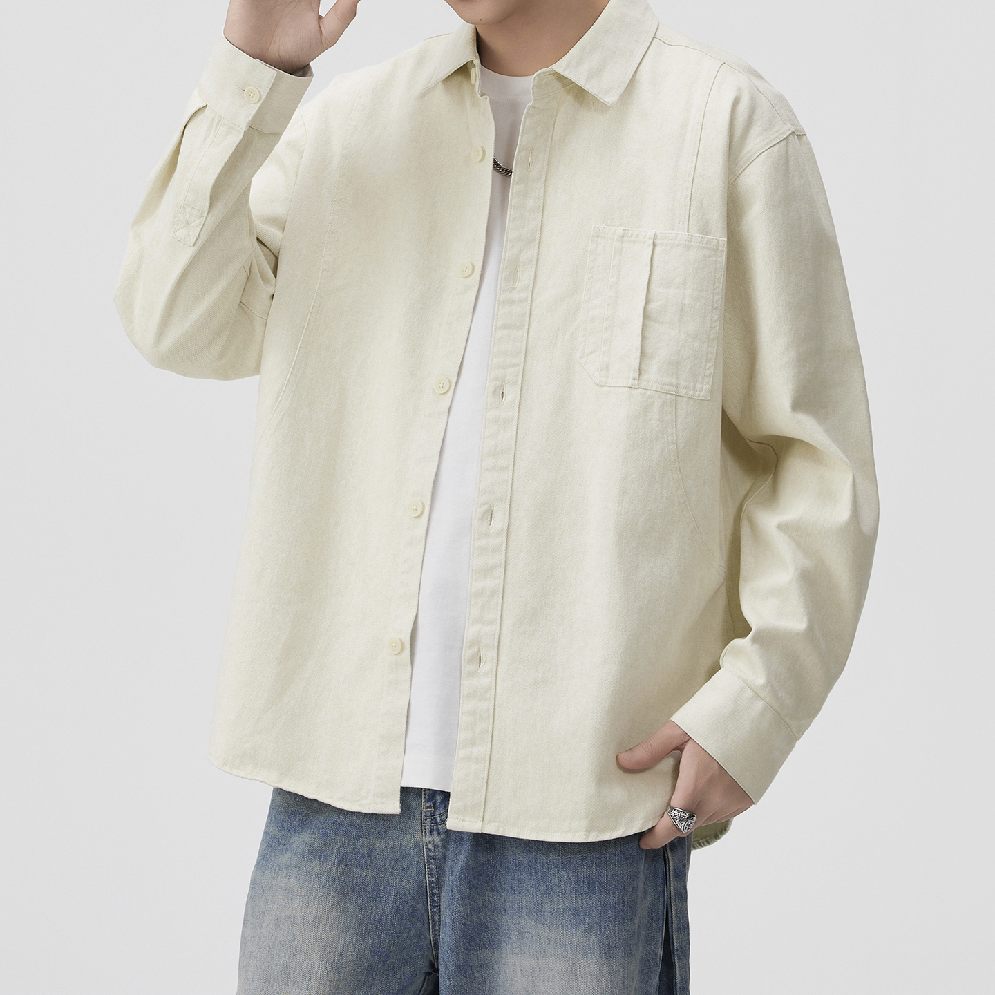牛仔衬衣男18045803 男洗水单口袋宽松长袖 设计师款 佐丹奴牛仔衬衫