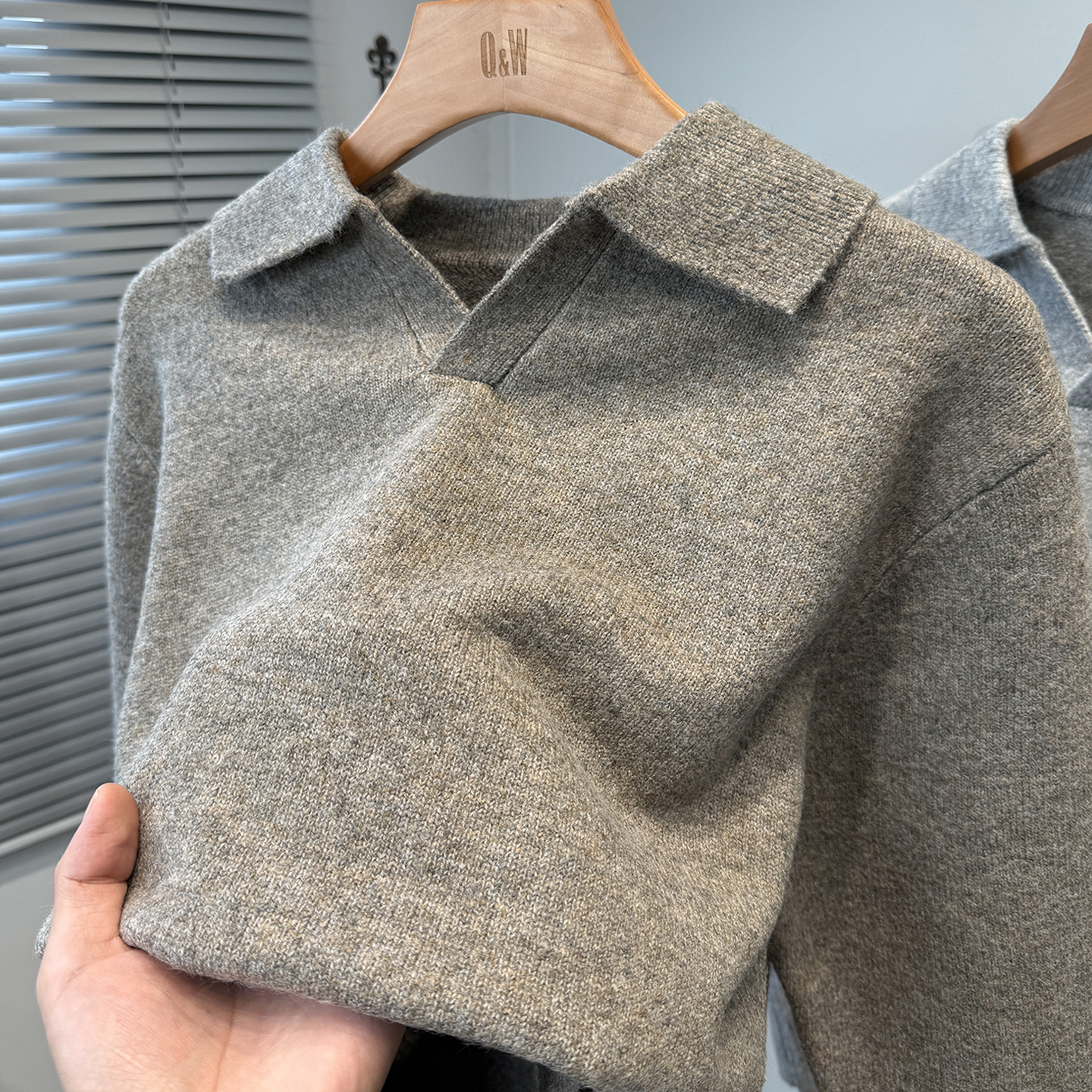 海鸥领毛衣男秋冬加厚套头针织polo衫 青年休闲上衣纯色百搭 男韩版