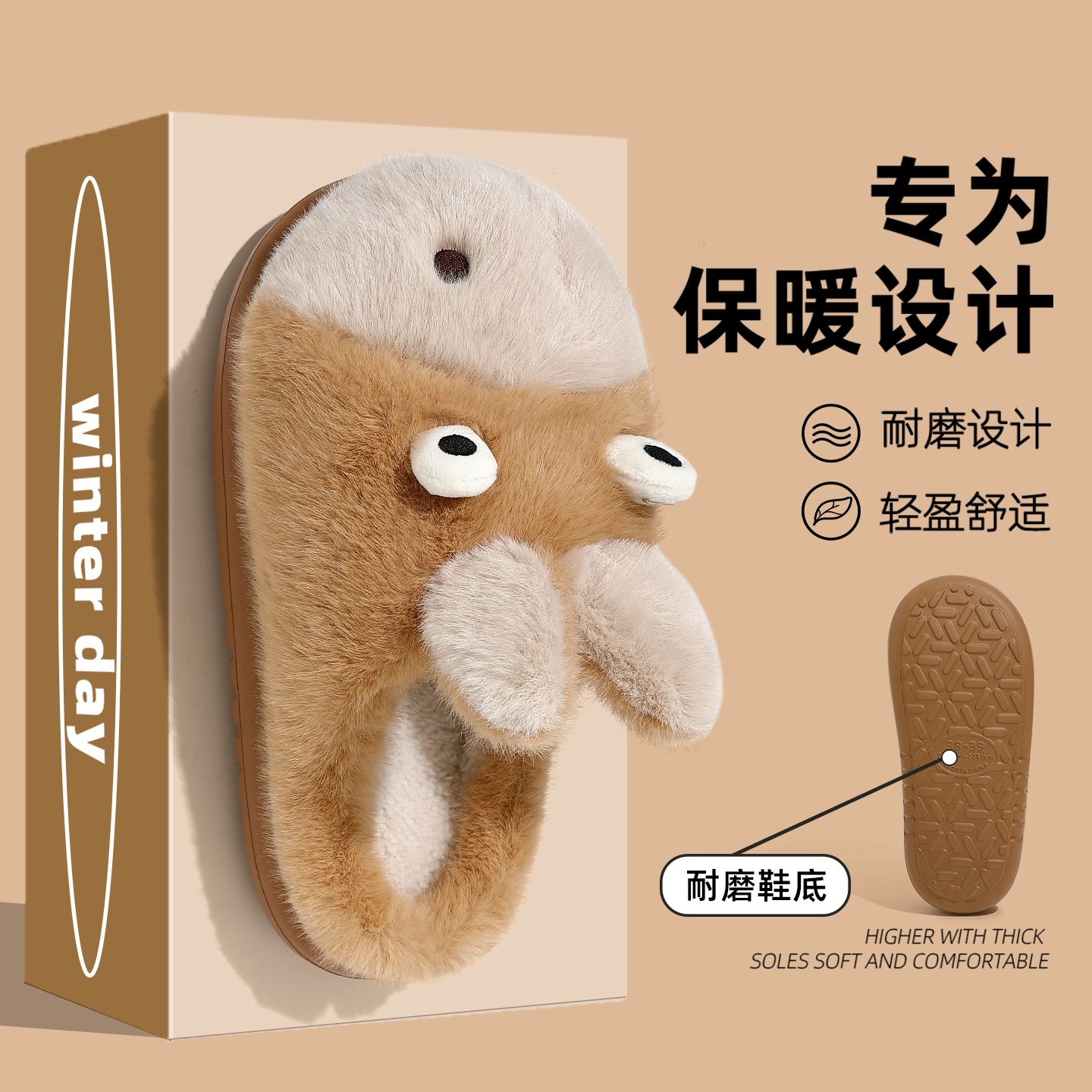 可爱小毛驴家居室内防滑保暖毛毛绒拖鞋 棉拖鞋 2025新款 秋冬季 女款