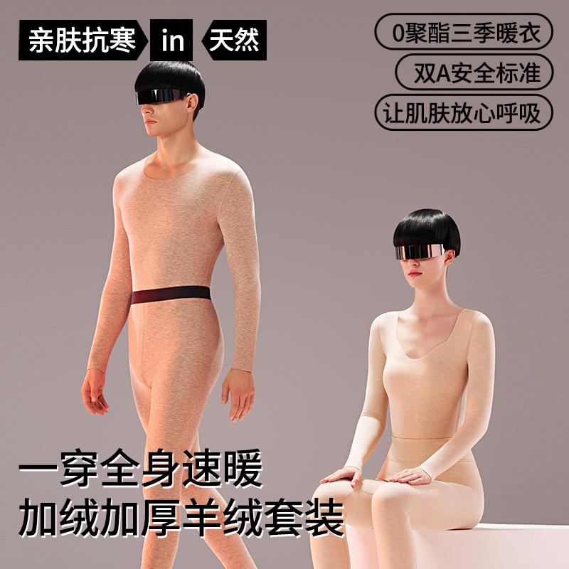 打底衫 内穿棉毛衫 男女加绒加厚秋衣秋裤 初内秋冬防寒保暖内衣套装