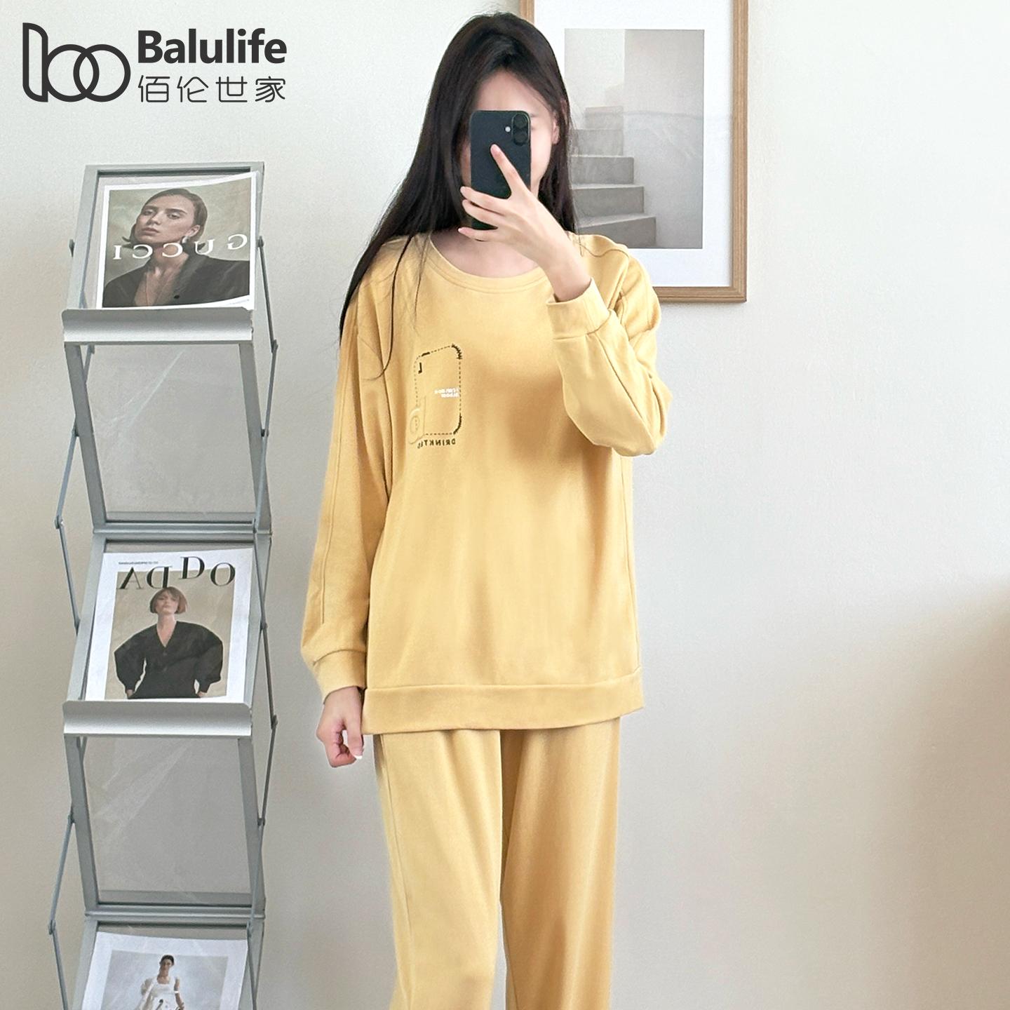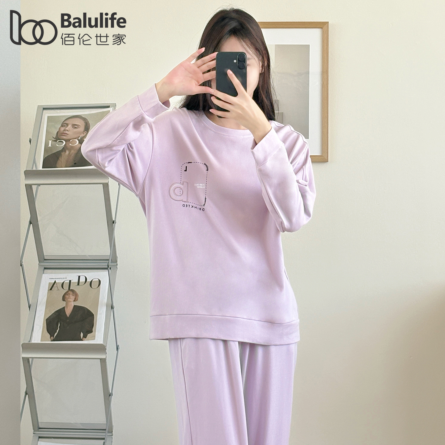 清新圆领套装 家居服新款 可外穿 舒绒棉长袖 佰伦世家睡衣女士春秋款