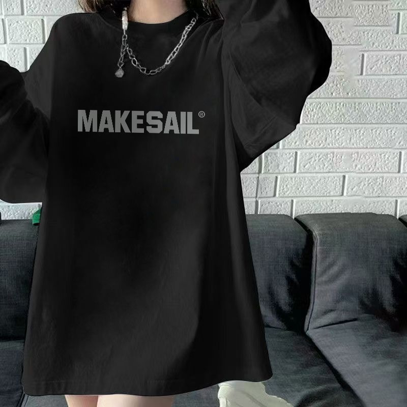长袖 外穿ins秋季 圆领T恤通勤高级感 复古潮牌重磅高街新款 轻奢美式
