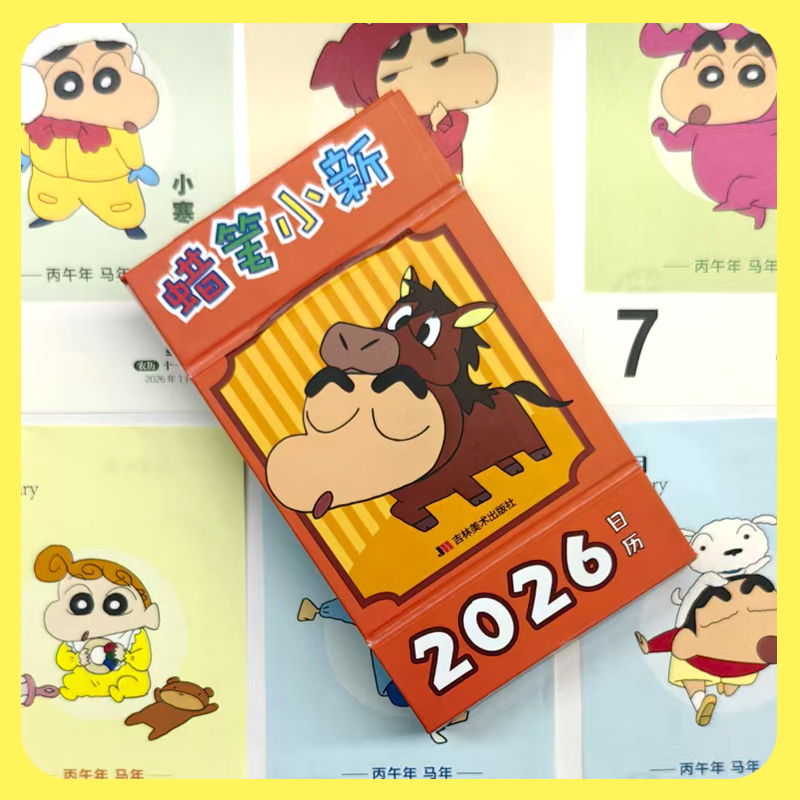 马年新款 台历 计划记事备忘 蜡笔小新日历 文创礼物 自律打卡本 2026年丙午马年多功能日历 高颜值桌面摆件 官方正版 可爱卡通形象