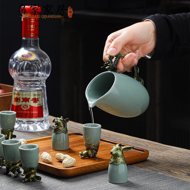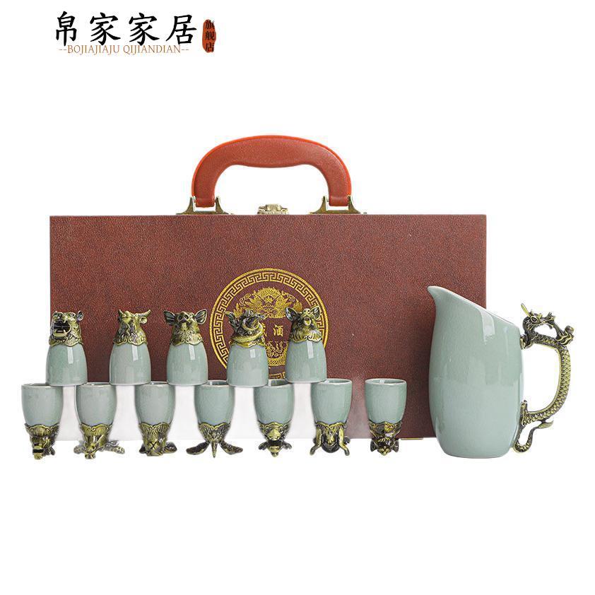 小酒杯分酒器礼盒套装 新品 陶瓷十二生肖酒具创意兽首镀金酒具套装
