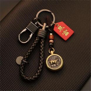 情侣款 汽车钥匙扣黄铜十二生肖钥匙链手工挂件复古创意转钱手把件
