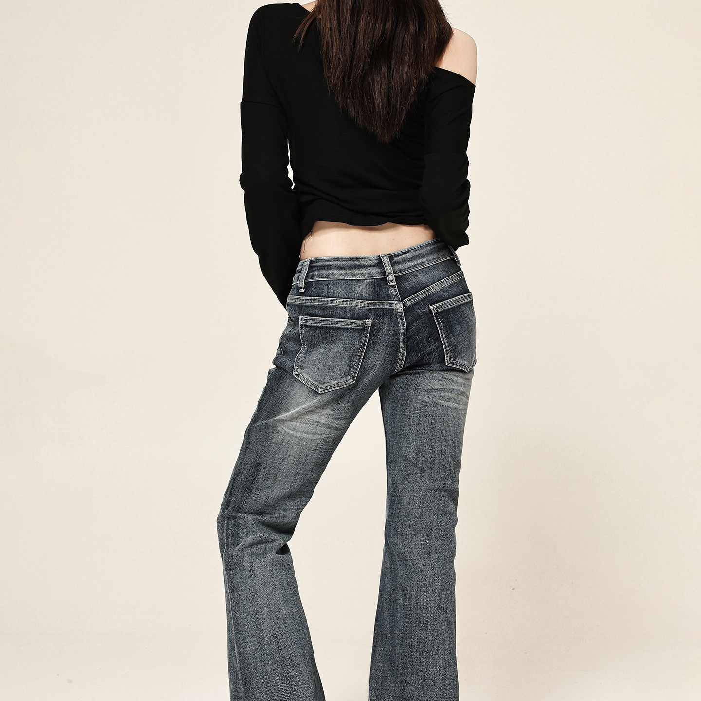 25年春夏女士潮流时尚 牛仔裤 休闲薄款 喇叭裤 子 修身 SPAO韩国同款