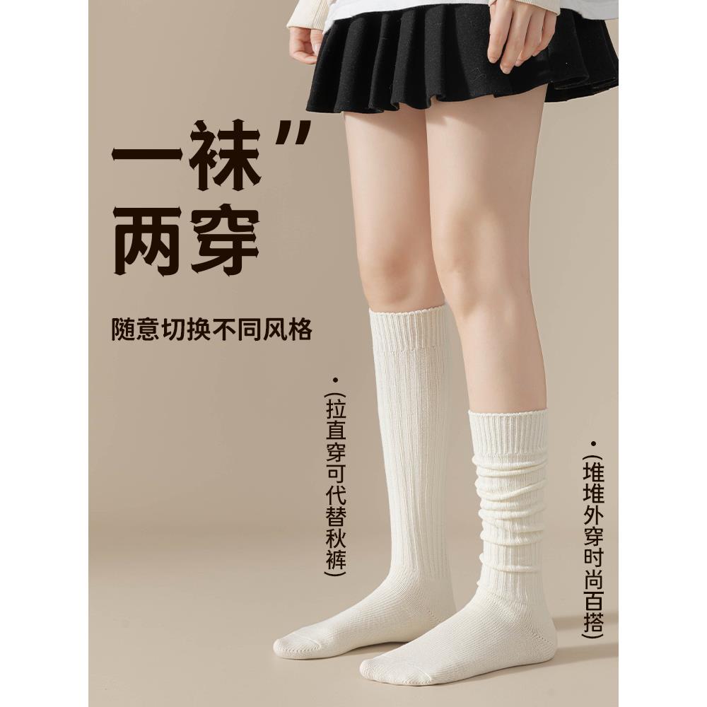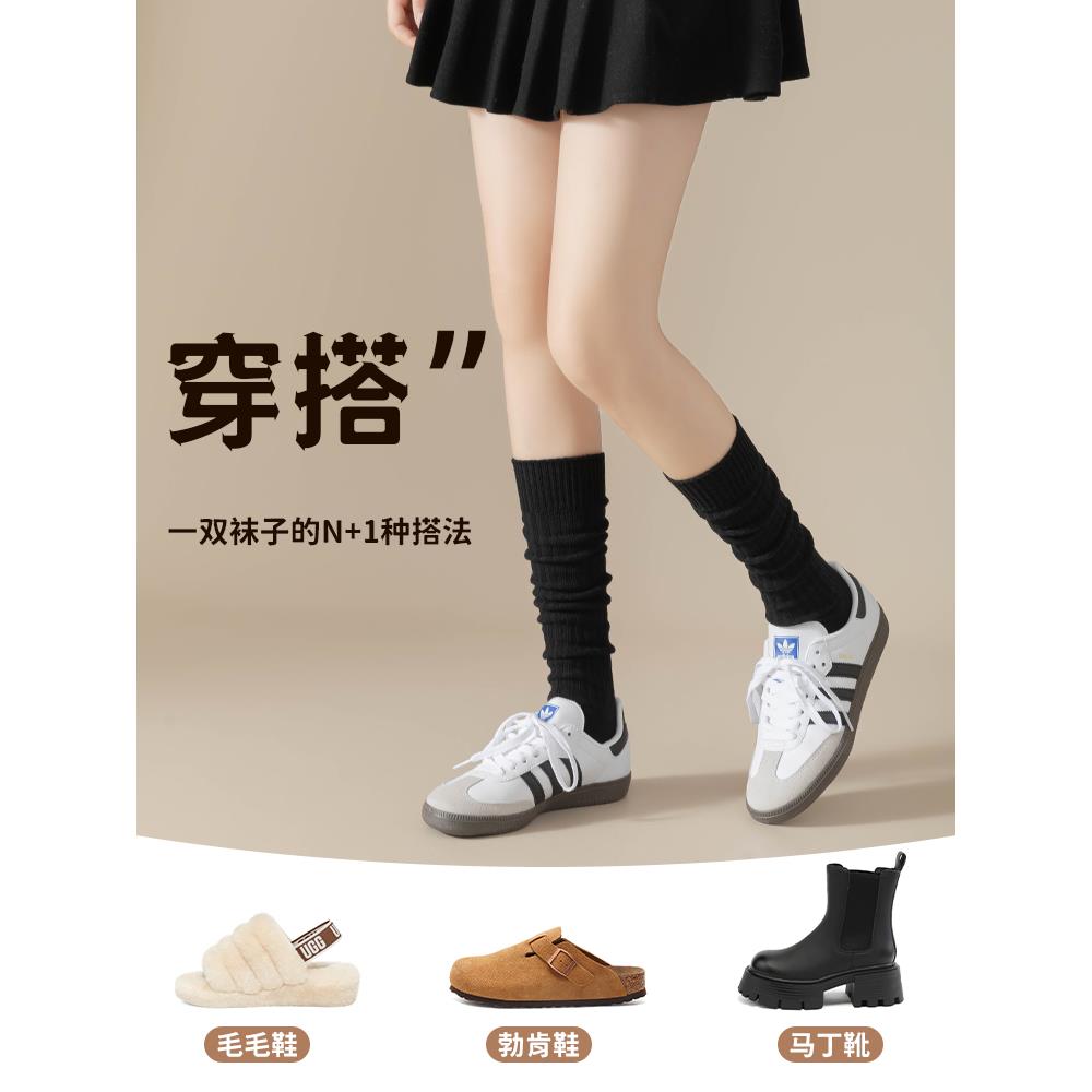 勃肯鞋 小腿袜粗线双针显瘦堆堆秋冬高筒棉袜及膝长袜 袜子女春秋款
