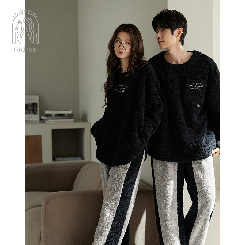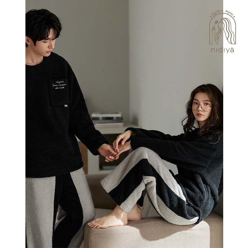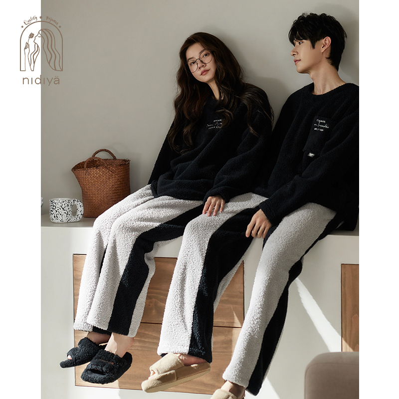 海岛绒可外穿家居服 简约薄款 睡衣女秋冬季 保暖珊瑚绒女士睡衣套装