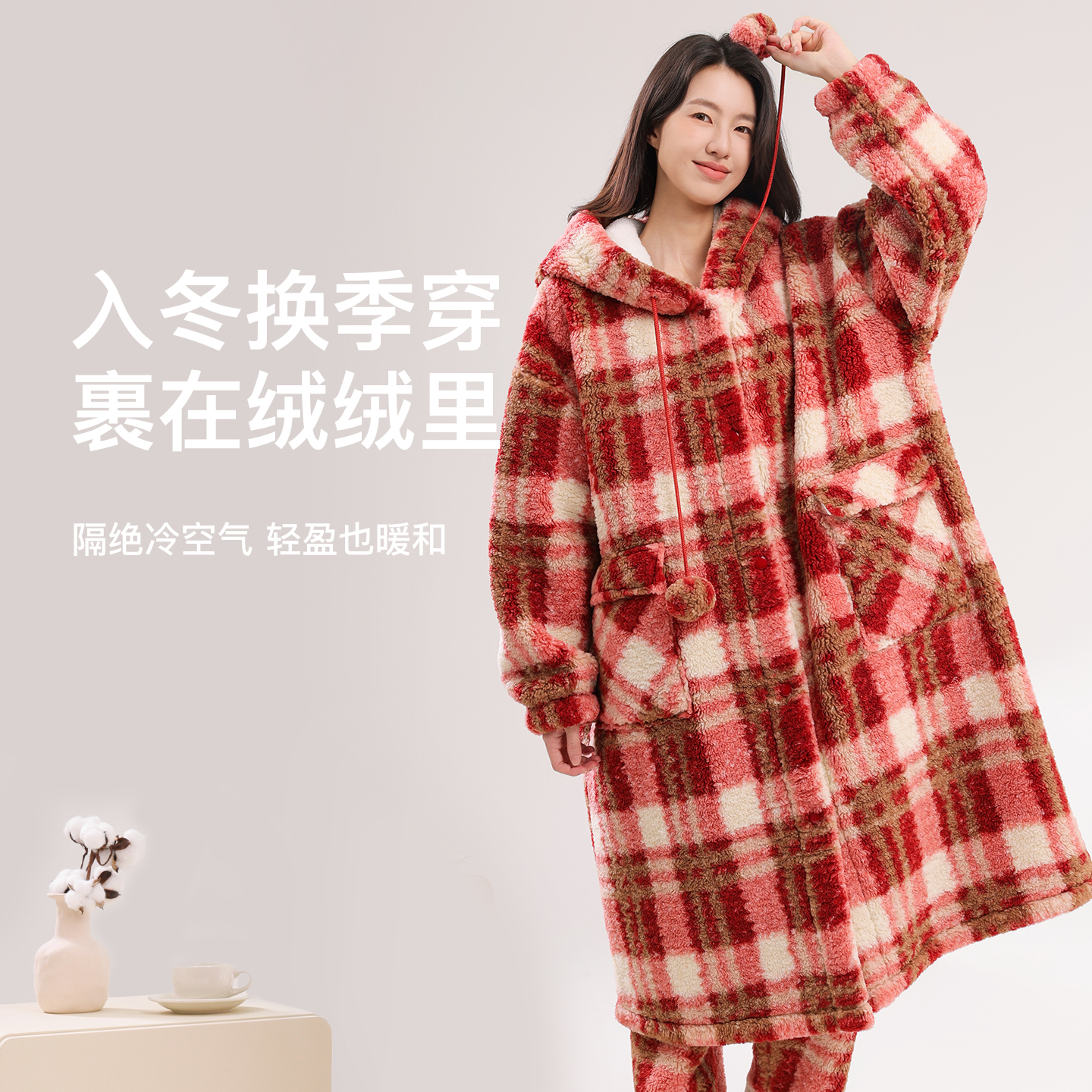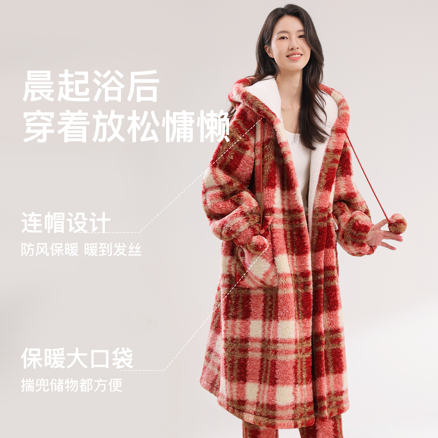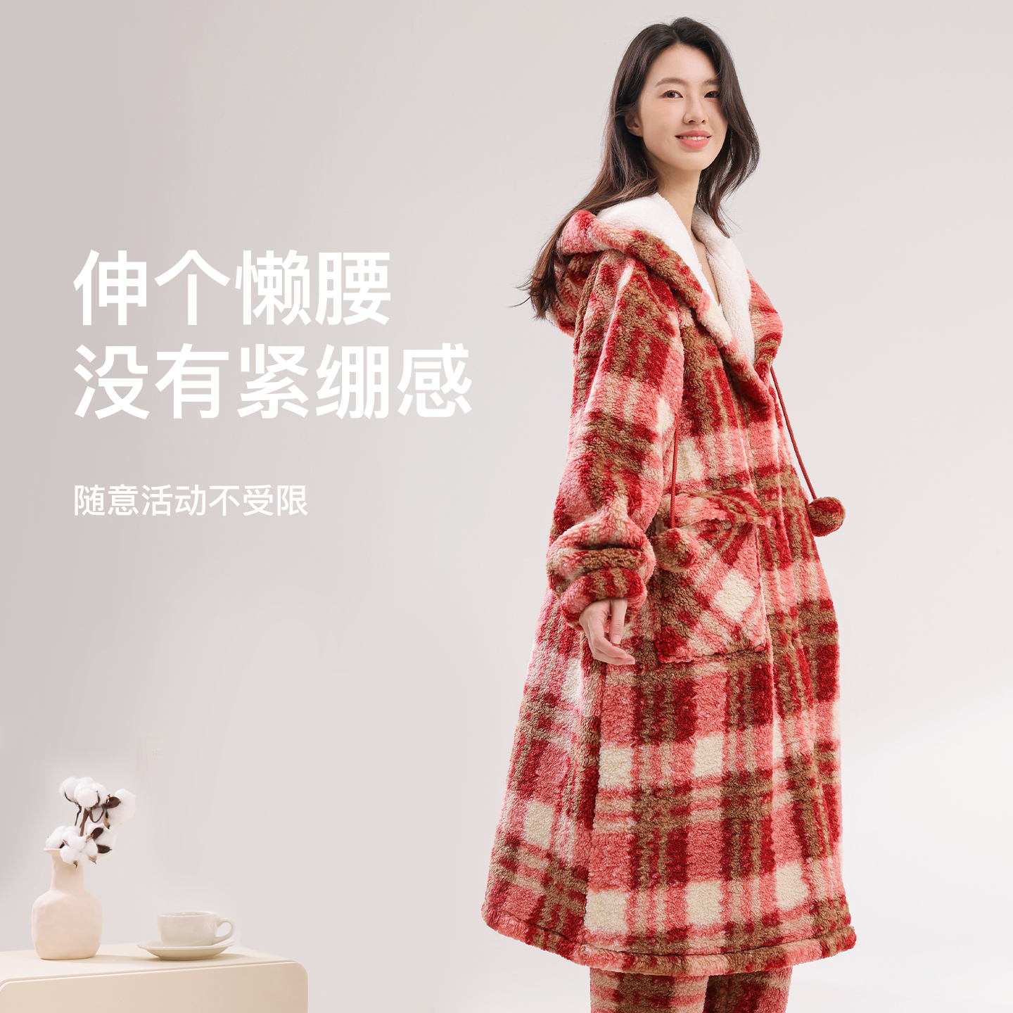 加厚珊瑚绒家居服套装 安之伴半边绒睡衣情侣冬季 林依轮直播间