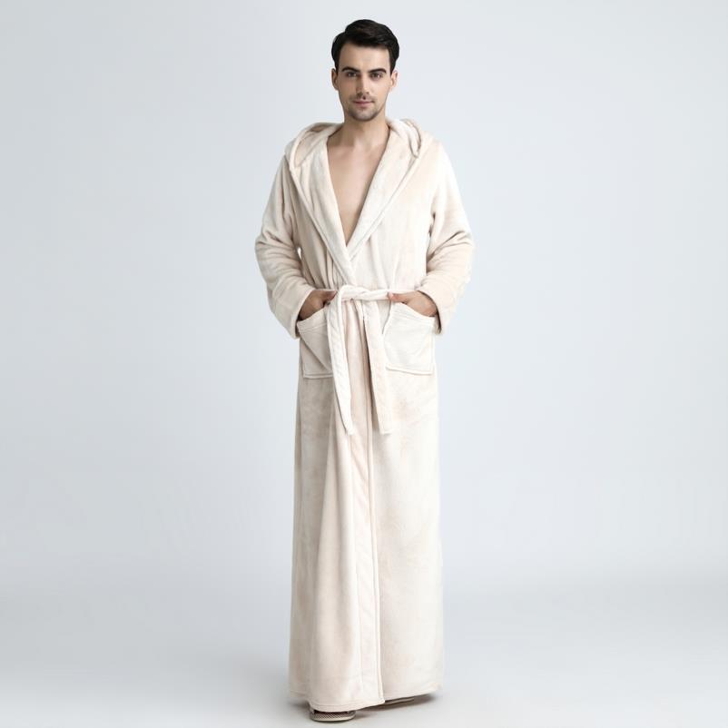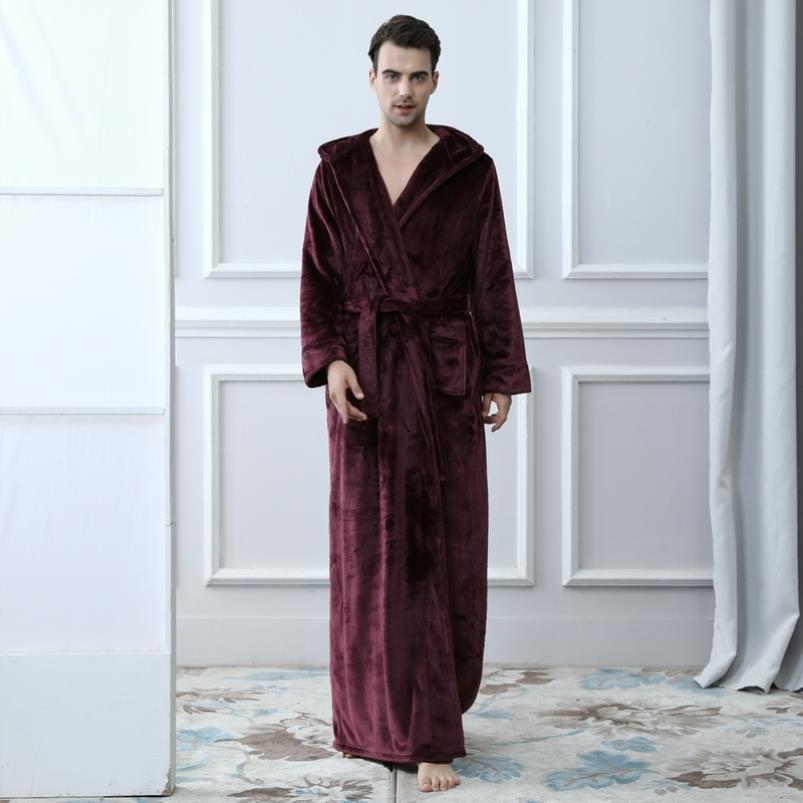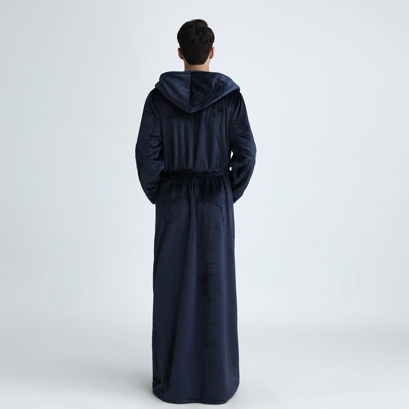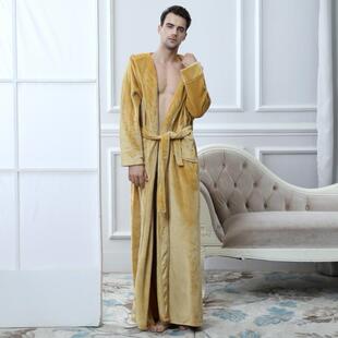 珊瑚绒浴袍加长1009c 长到脚踝加厚戴帽保暖大码 秋冬睡袍男士 冬季