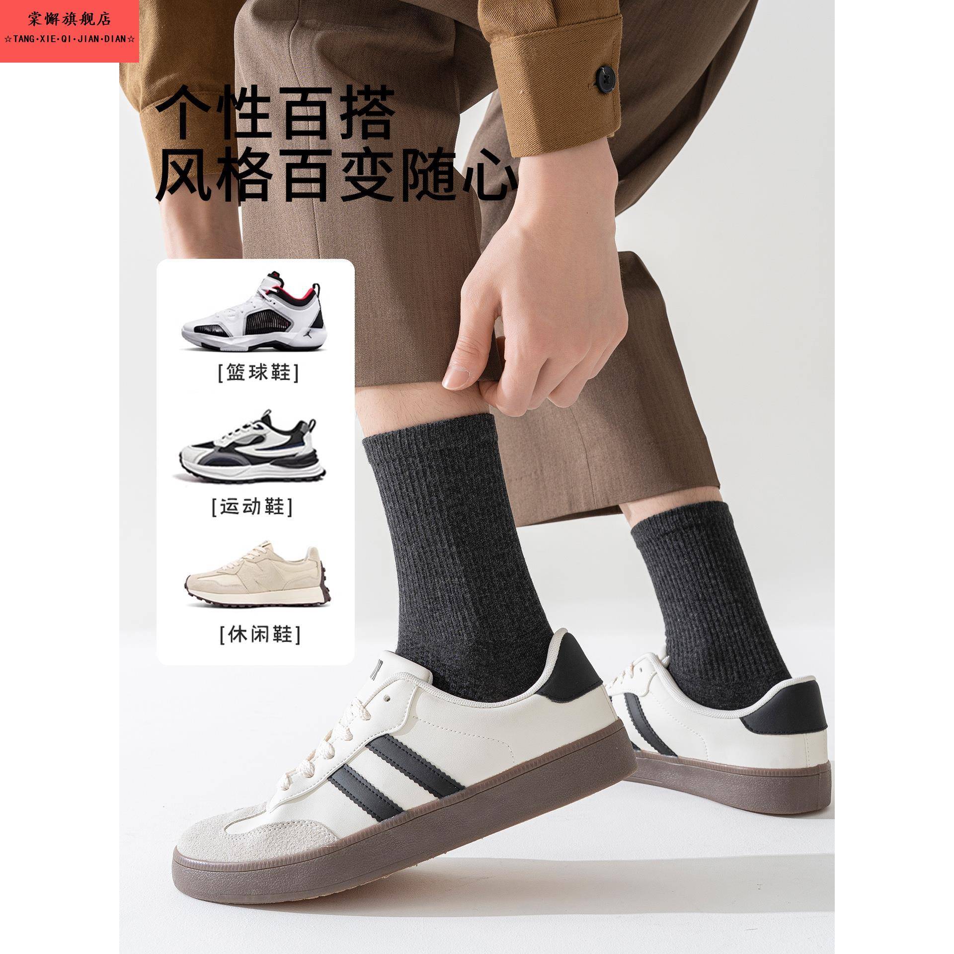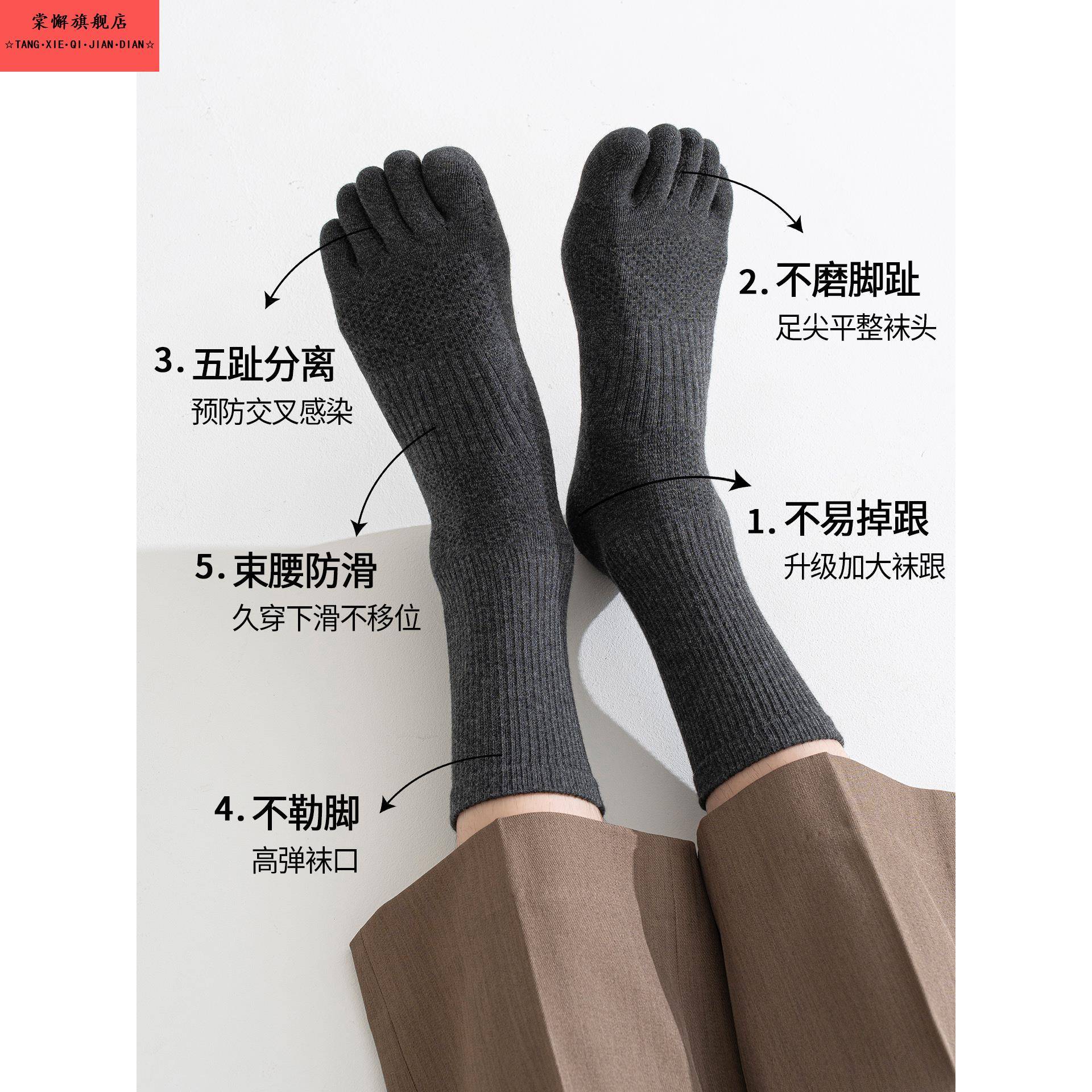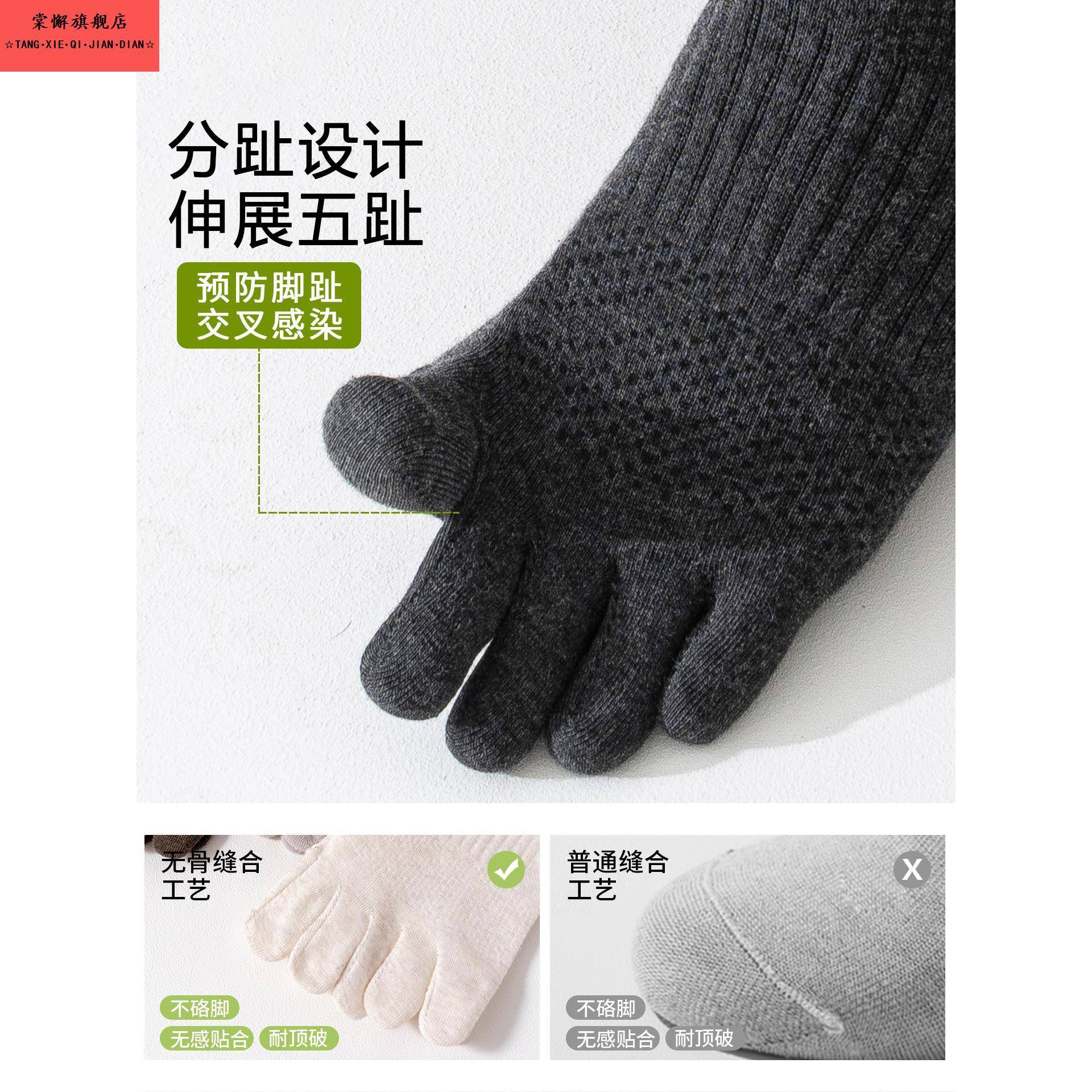 袜子男款 中筒袜吸汗防臭男袜运动防滑分趾长袜冬 纯棉五指袜秋冬季
