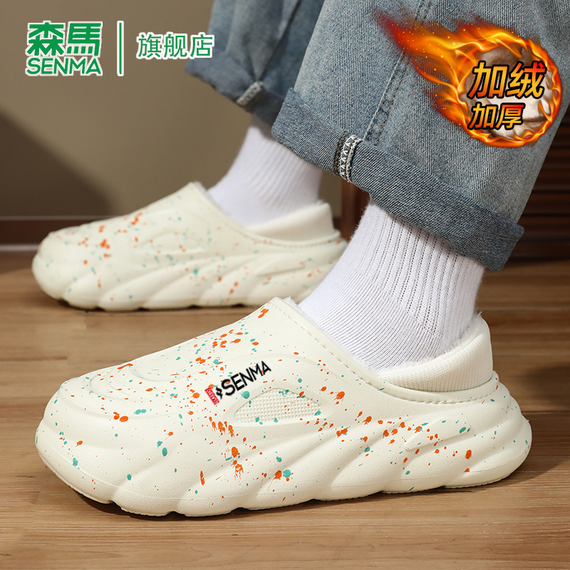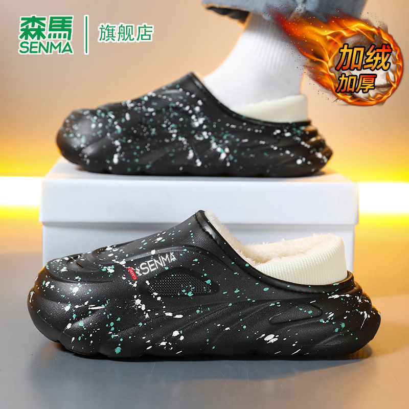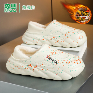 张凌赫同款 厚底增高可外穿预 百丽厚岛吐司2代包头冬加毛勃肯拖鞋