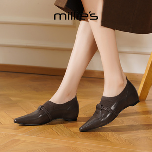 2025秋新款 布洛克中粗跟皮鞋 HL257112 系带牛津鞋 哈森漆皮德比鞋