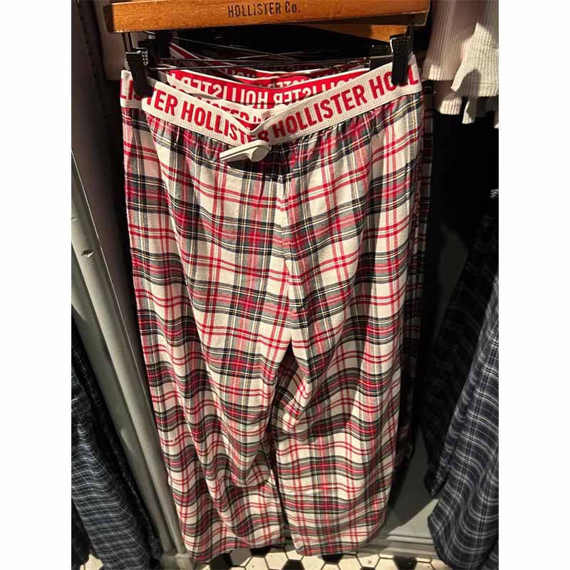 红色格纹睡裤 家居遛弯外裤 女2025夏季 高腰宽松复古格子裤 新款 韩版