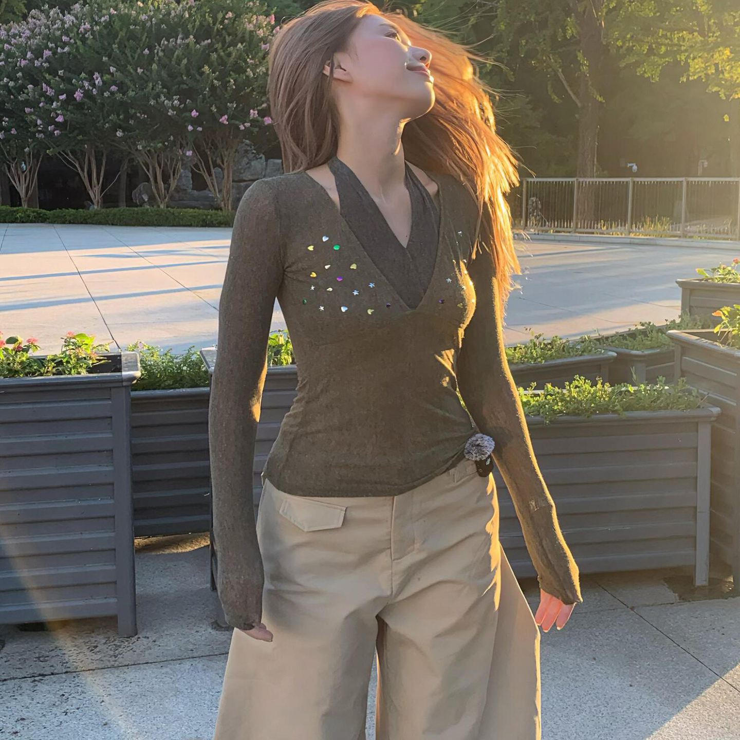 秋冬新款 开衫 修身 收腰上衣早秋穿搭美式 短款 灰色连帽卫衣外套女款