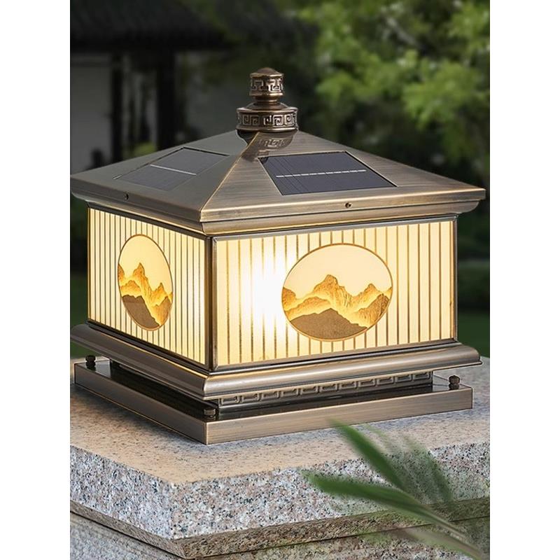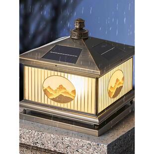新中式 全铜柱头灯太阳能户外庭院别墅大门灯门柱灯柱子灯围墙两用