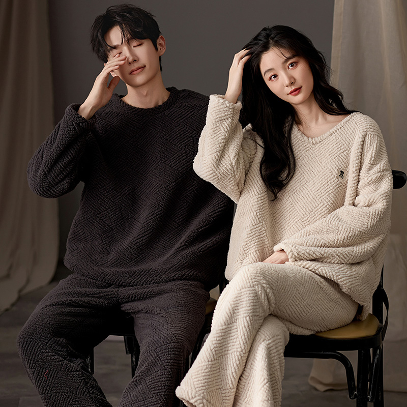 珊瑚绒家居服套装 加绒保暖法兰绒女士冬款 男款 三昌情侣睡衣秋冬季