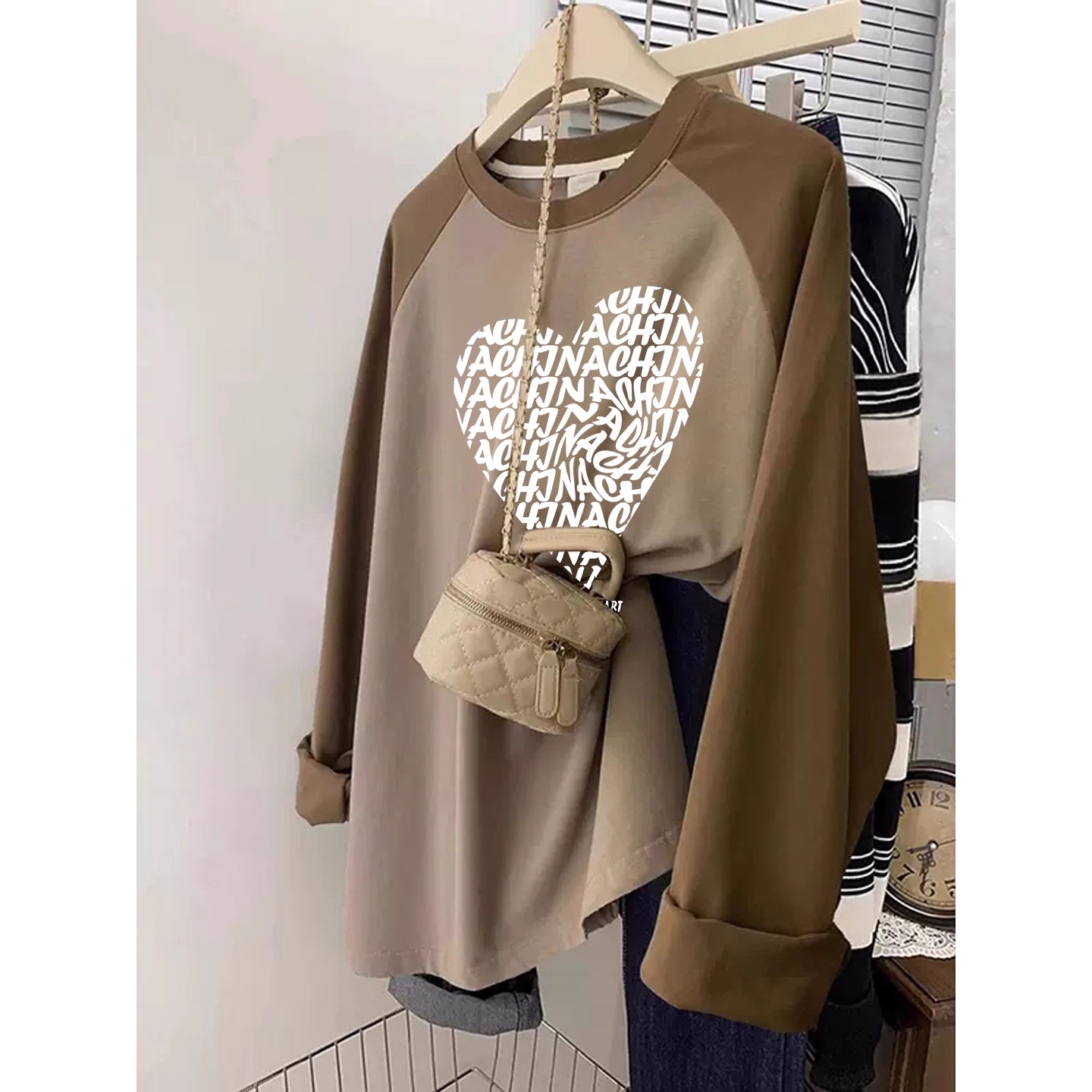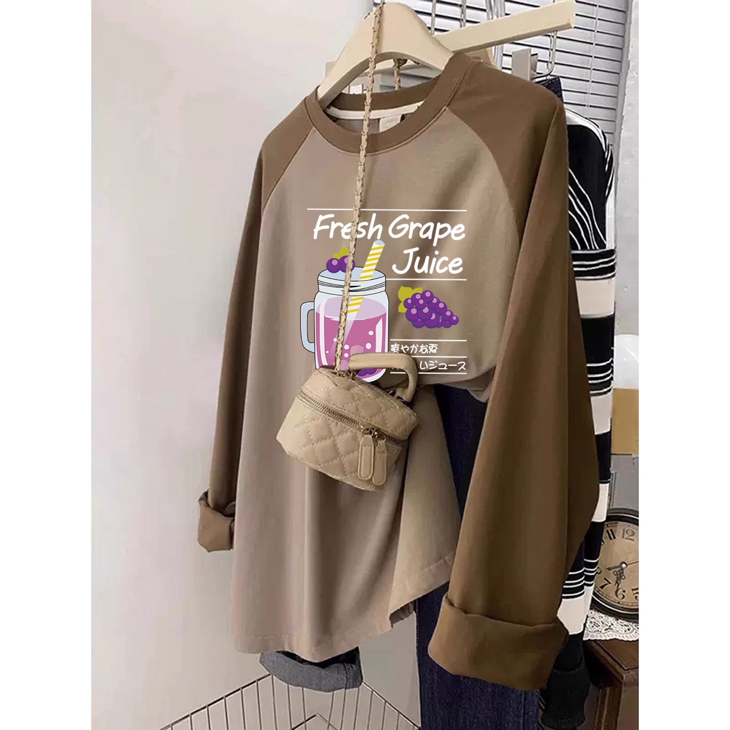 胖mm慵懒风内搭打底衫 t恤女oversize大码 上衣服 撞色插肩长袖 秋季
