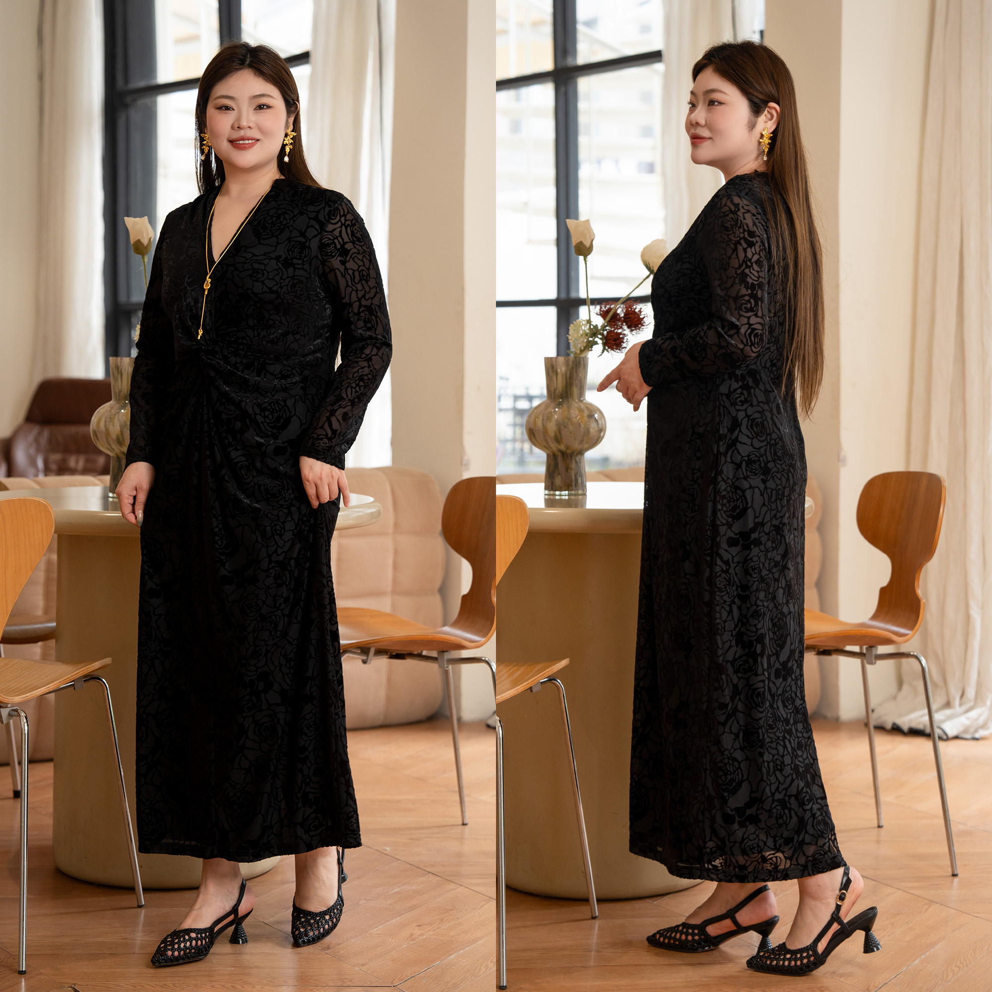 美丽客栈原创高端大码 胖mm200斤加肥加大贵气礼服V领春连衣裙 女装