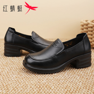 通勤单鞋 红蜻蜓女鞋 真皮休闲舒适一脚蹬软底小皮鞋 新款 女 2025秋季