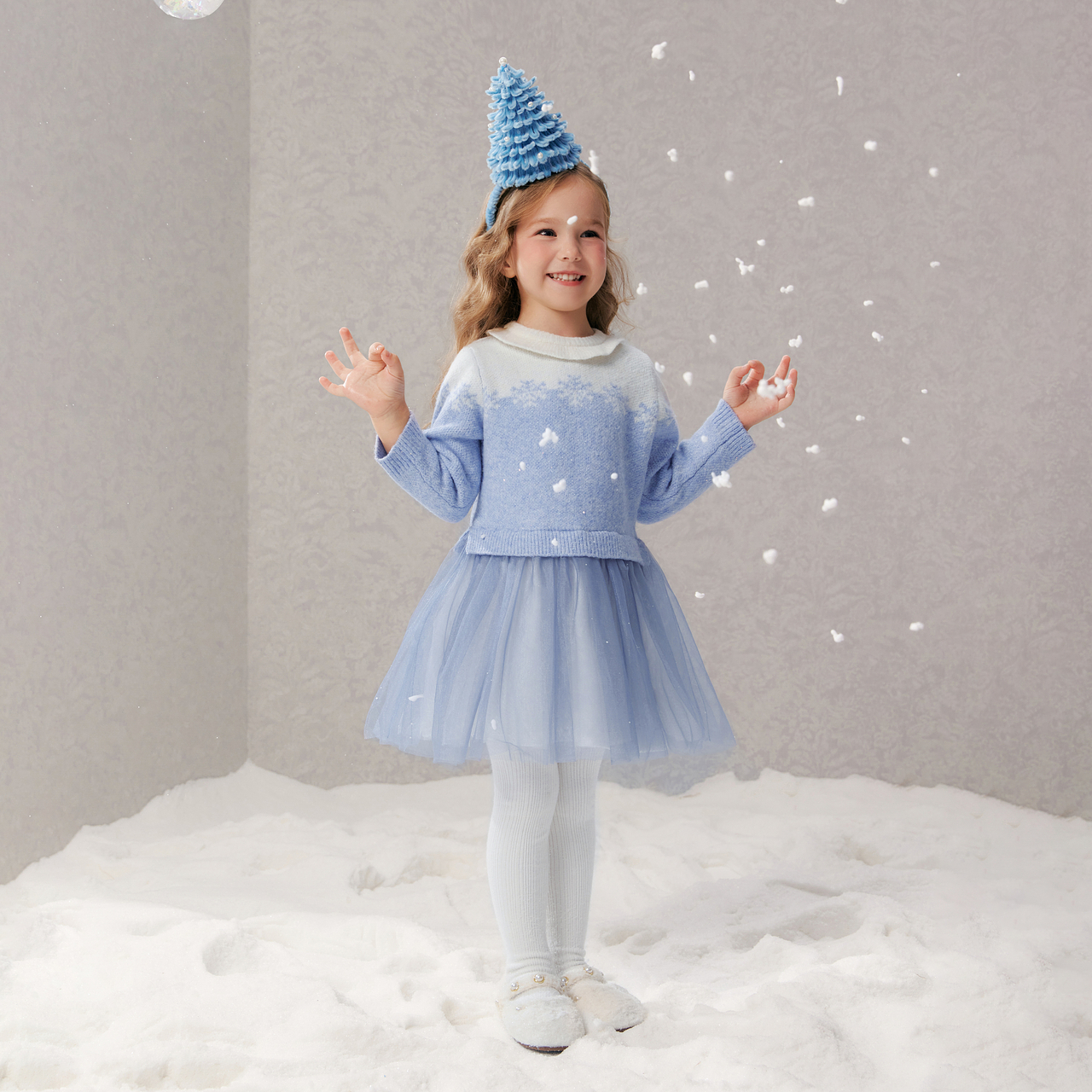 宝宝小童儿童加厚毛衣网纱裙子 新款 笛莎童装 女童连衣裙2025秋冬装