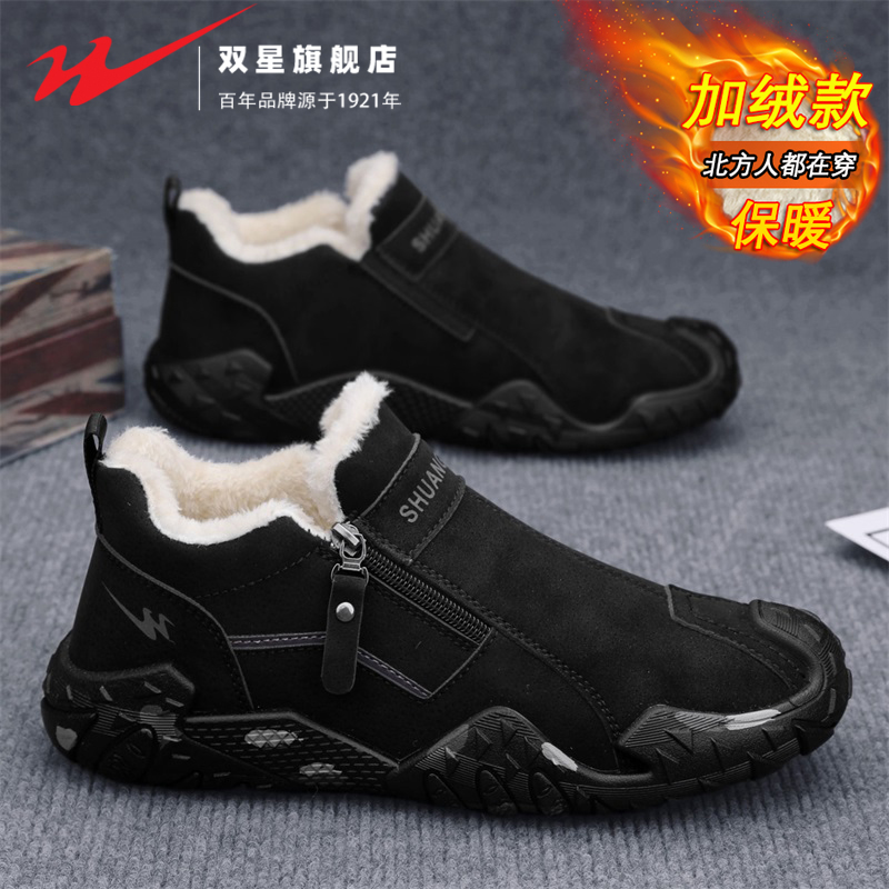 户外运动休闲工地工作劳保鞋 双星工装 加绒保暖一脚蹬棉鞋 冬季 男鞋