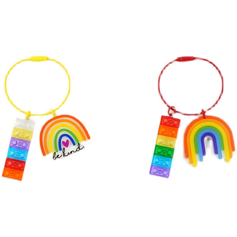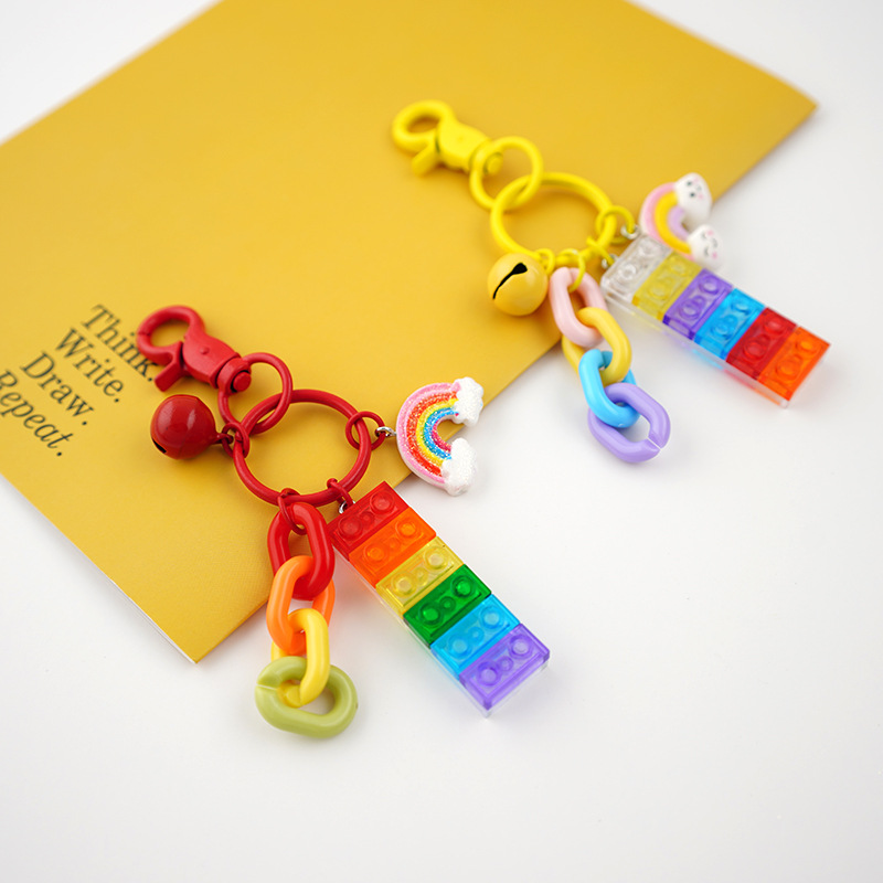 可爱积木彩虹铃铛喜庆钥匙扣挂件装 饰包包汽车钥匙圈卡通创意礼物