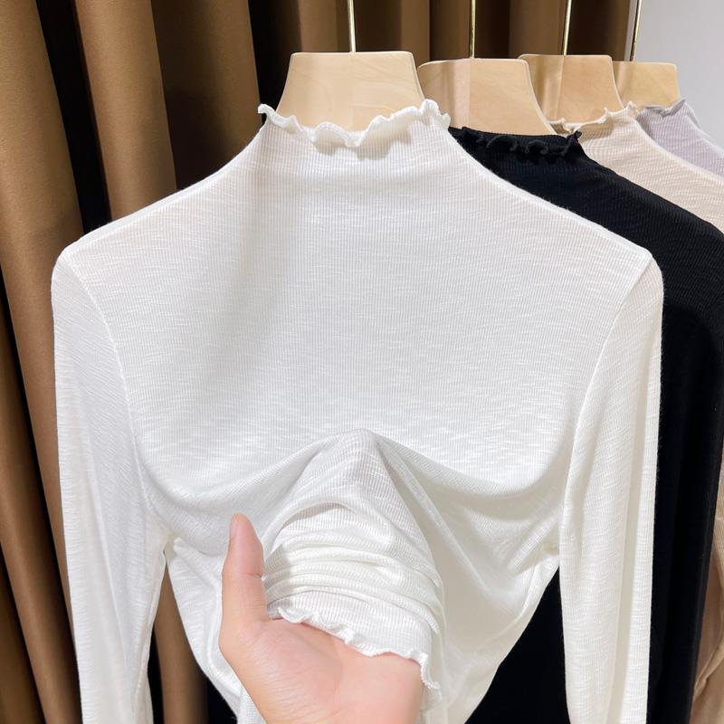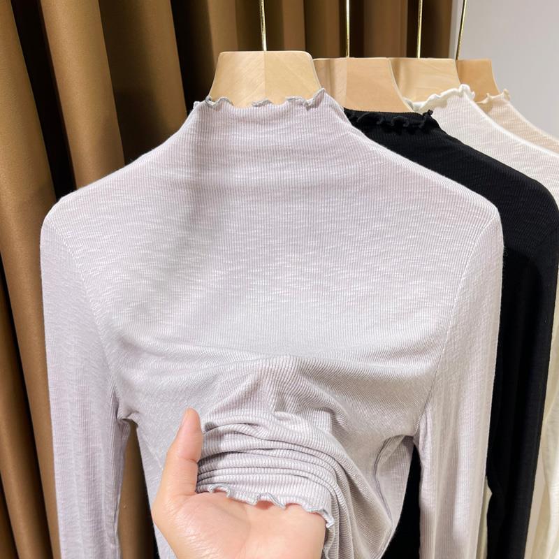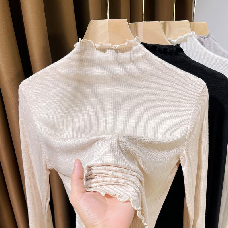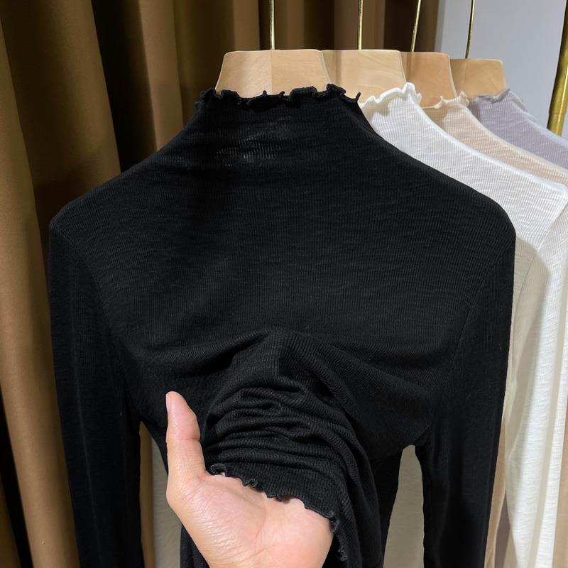 小衫 内搭木耳边长袖 上衣1018e 女秋新款 半高领针织打底衫