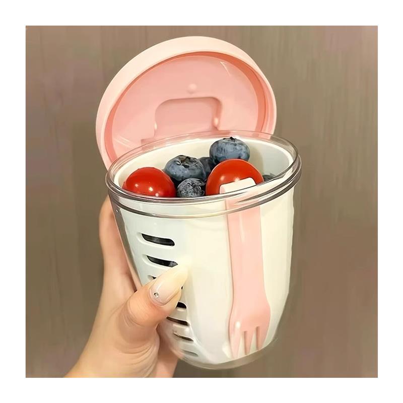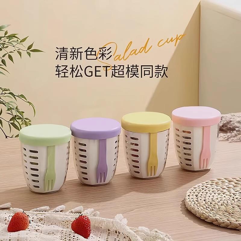 水果杯便携高颜值可沥式 沙拉杯食品级自带叉子外出外带野餐盒密封