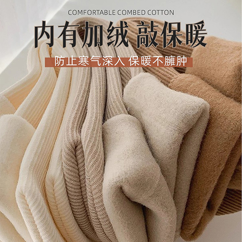 雪地袜子女秋冬款 中筒袜加绒加厚保暖长筒毛圈睡眠女士长袜厚袜子