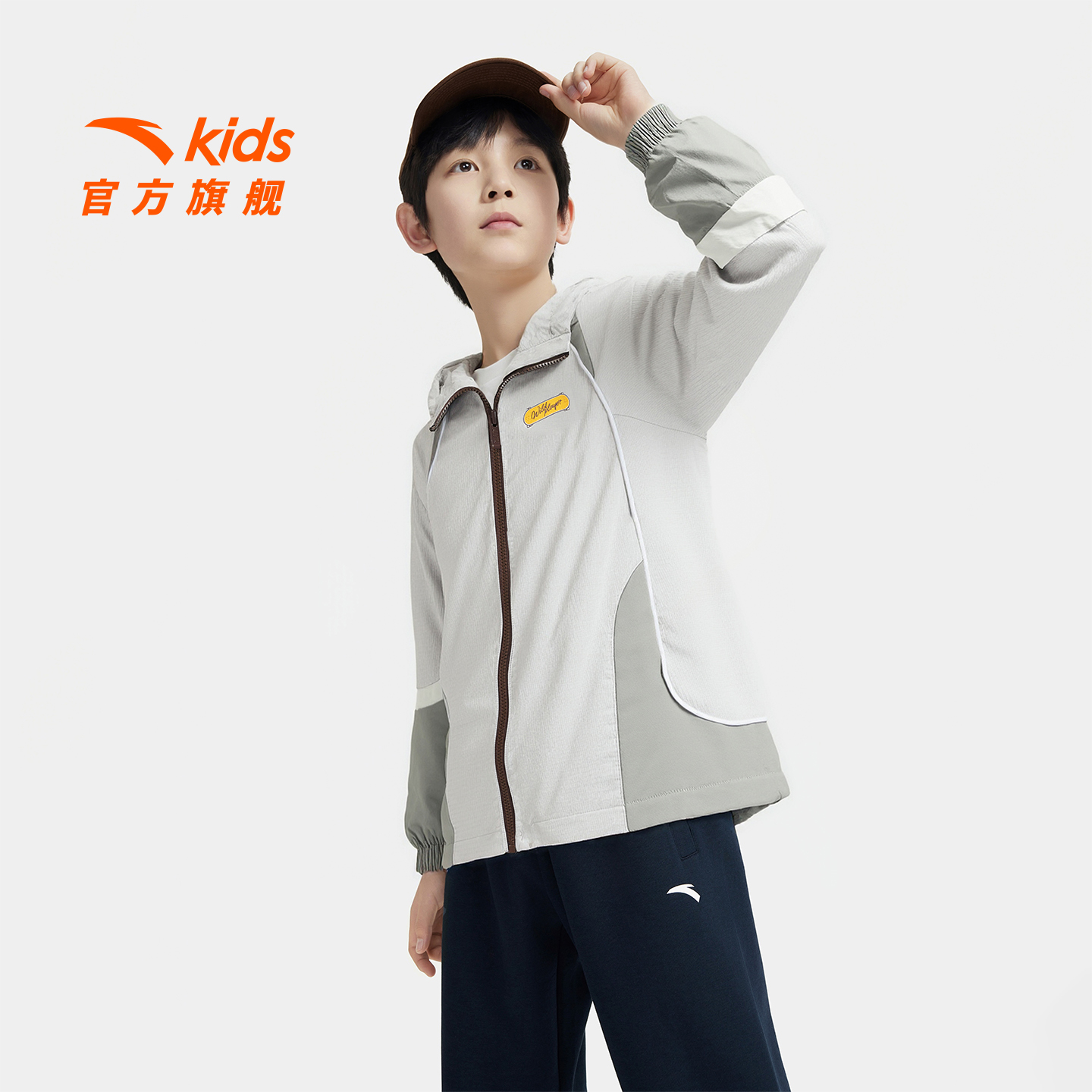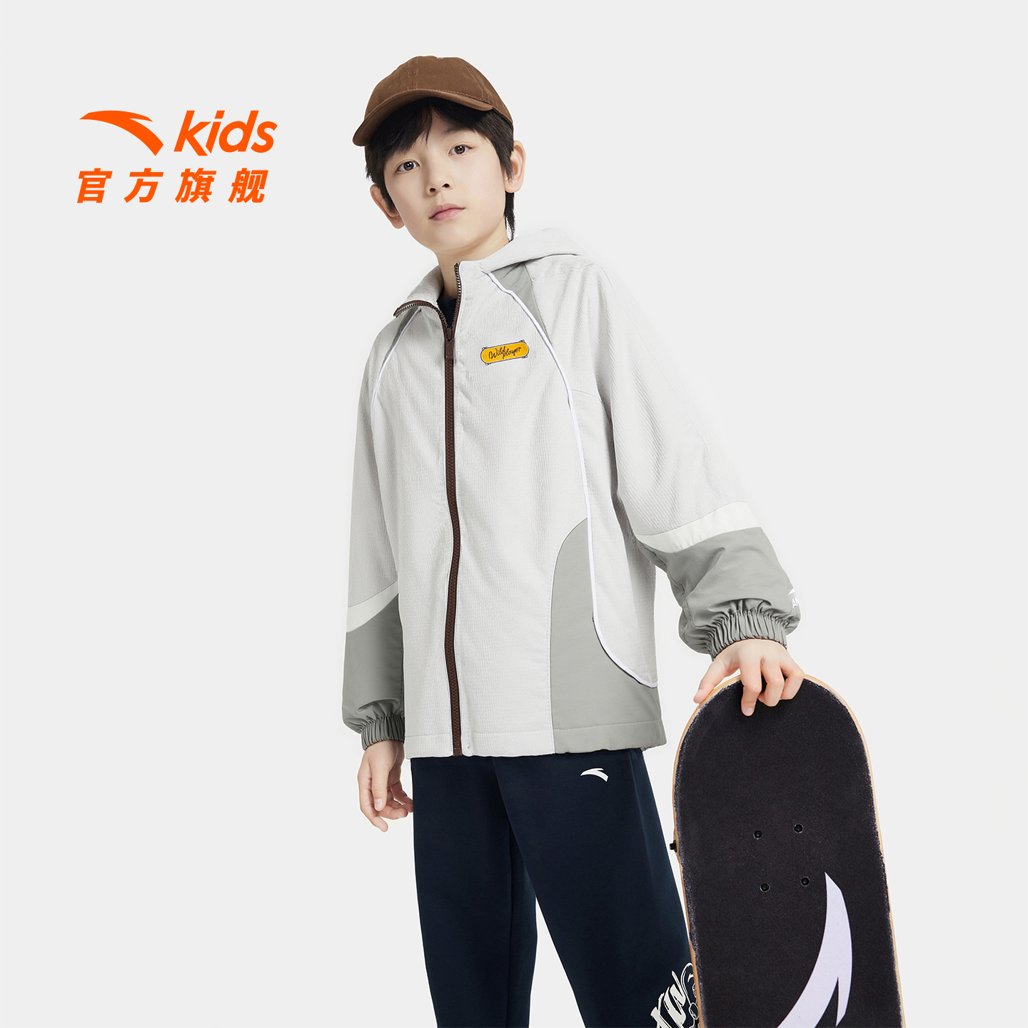 安踏儿童男大童丝光绒运动上衣2025秋新款 舒适中大童连帽厚外套潮