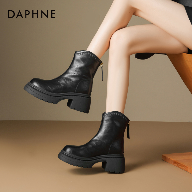 女靴子 舒适小个子增高加绒内里时装 达芙妮黑色中短靴2025冬季 新款
